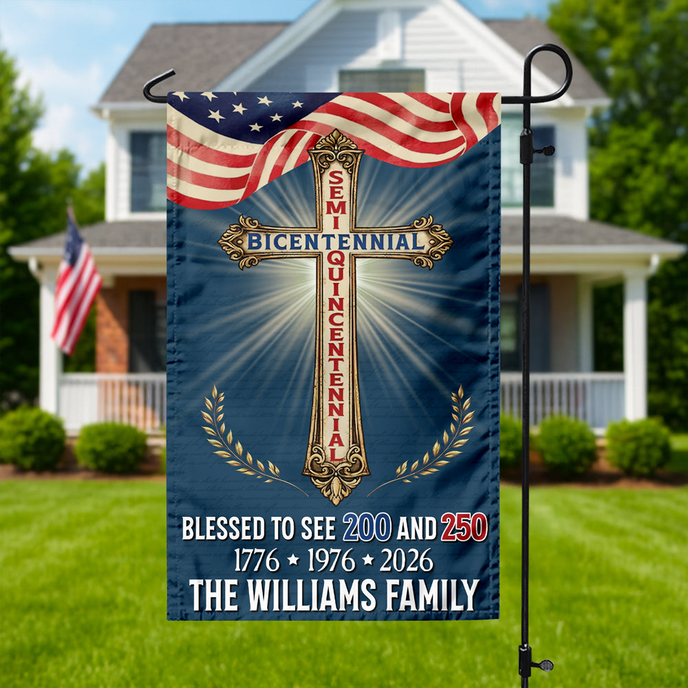 Custom Family Name Blessed to See 200 & 250 Years Bicentennial Semiquincentennial Christian Garden Flag HO82 901936