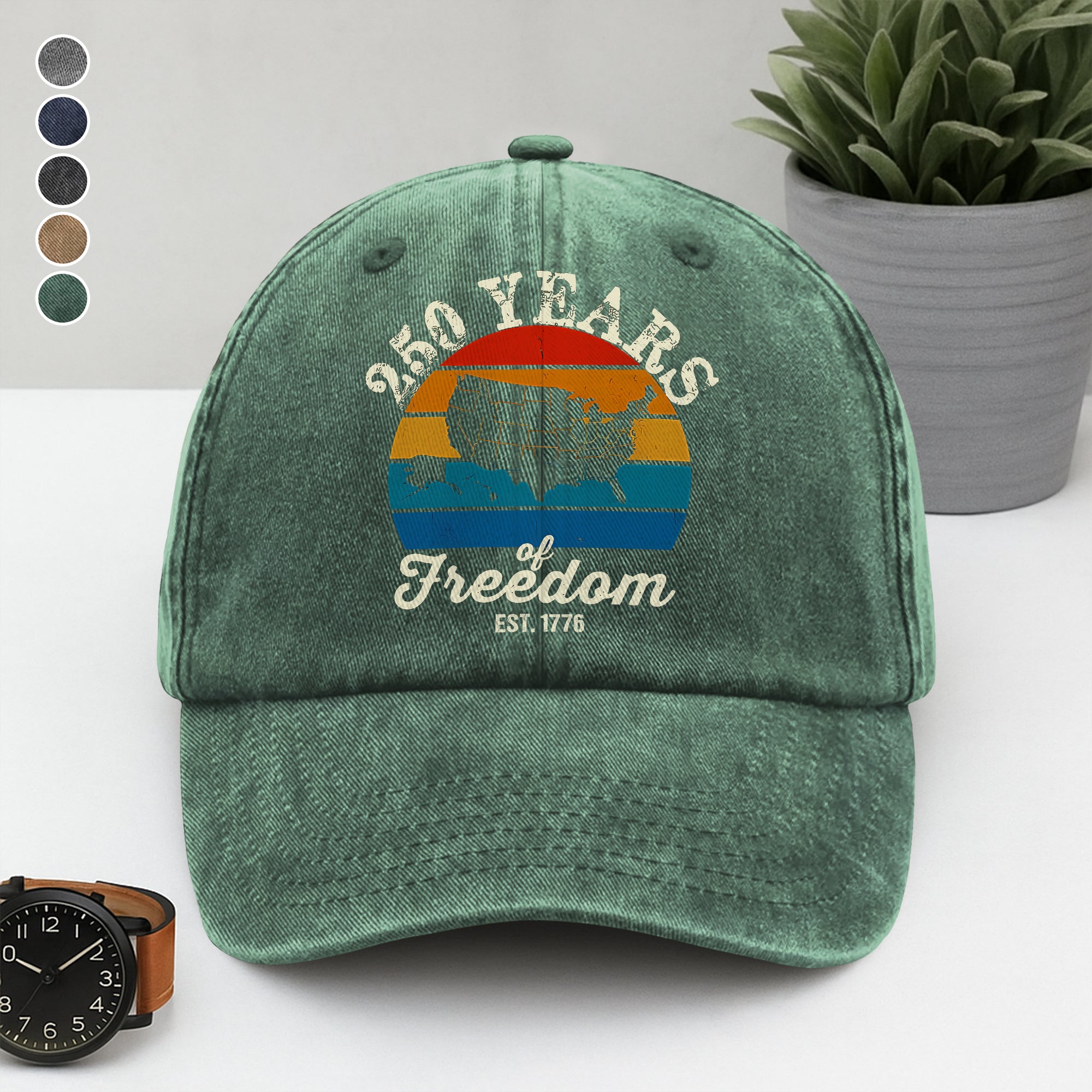Custom Dog Photo 250 Years of Freedom EST. 1776 Washed Denim Baseball Cap LM32 895329