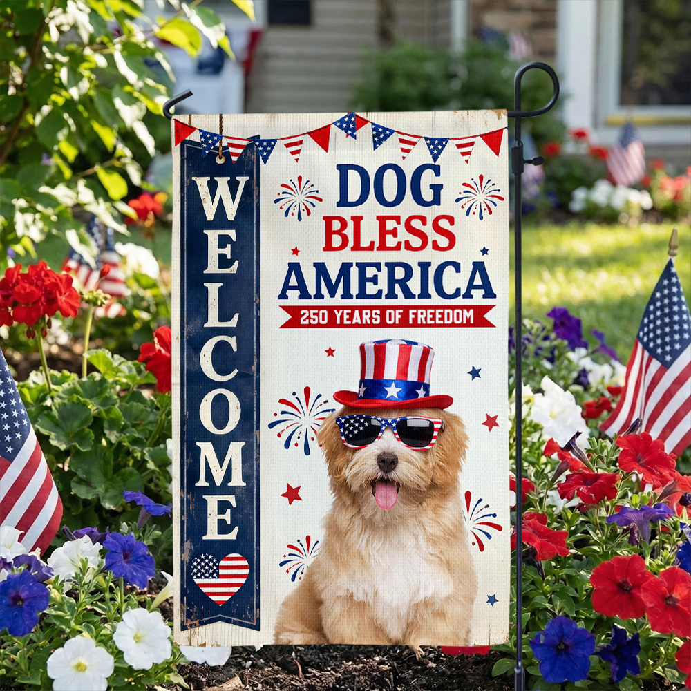 Celebrate your furry patriot in style with this custom photo garden flag that transforms your outdoor space into a tribute to American pride. Perfect for dog lovers who want to blend their pet's personality with festive décor, this personalized flag features your beloved companion against a backdrop of patriotic charm. Ideal as a memorable gift for the dog enthusiast in your life, it adds a unique, heartfelt touch to any yard or garden. Weather-resistant and eye-catching, this funny, one-of-a-kind piece sparks conversations while honoring 250 years of freedom. Make your pup the star of the neighborhood.