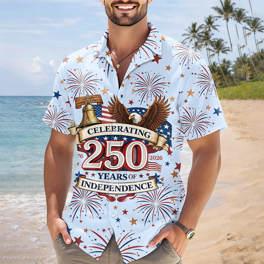 Celebrate America's legacy with this striking patriotic Hawaii shirt featuring a majestic bald eagle design. Perfect for the 250th anniversary, this vibrant piece combines classic Americana symbolism with tropical flair. The bold eagle imagery represents freedom and national pride, while the relaxed Hawaiian cut ensures comfort for any occasion—from casual gatherings to patriotic celebrations. Crafted with quality materials, this shirt makes a powerful statement about your love for the country. Whether you're attending a Fourth of July party, family reunion, or simply want to showcase your patriotic spirit, this unique blend of eagle symbolism and island style delivers both style and meaning. Stand out and inspire with wearable American pride.