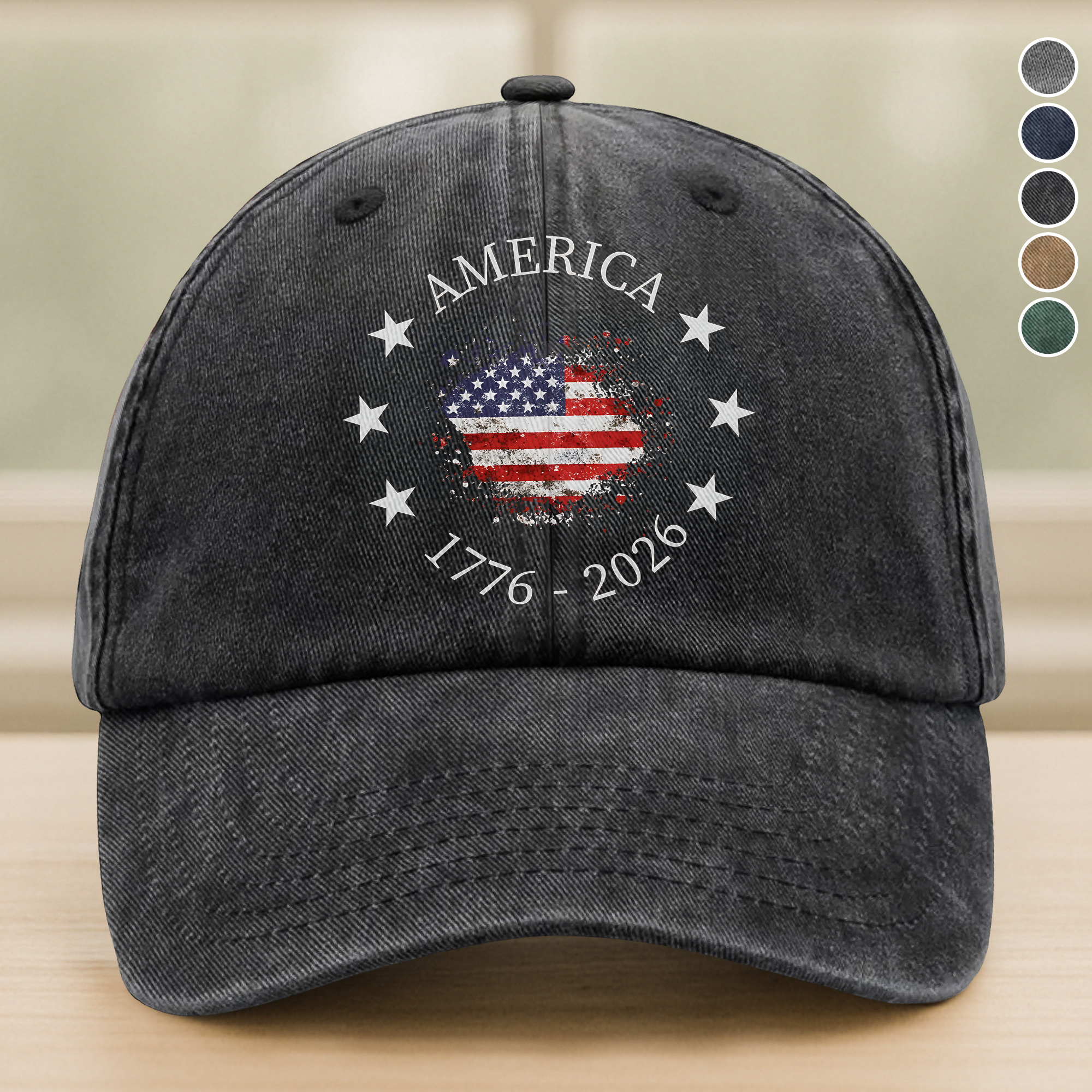 Celebrate America’s 250th anniversary with this 1776–2026 vintage washed denim baseball cap. Featuring a classic distressed look, it adds a timeless and stylish touch to any outfit. Perfect for everyday wear, outdoor activities, or patriotic events. A versatile keepsake to honor this historic milestone with effortless style.