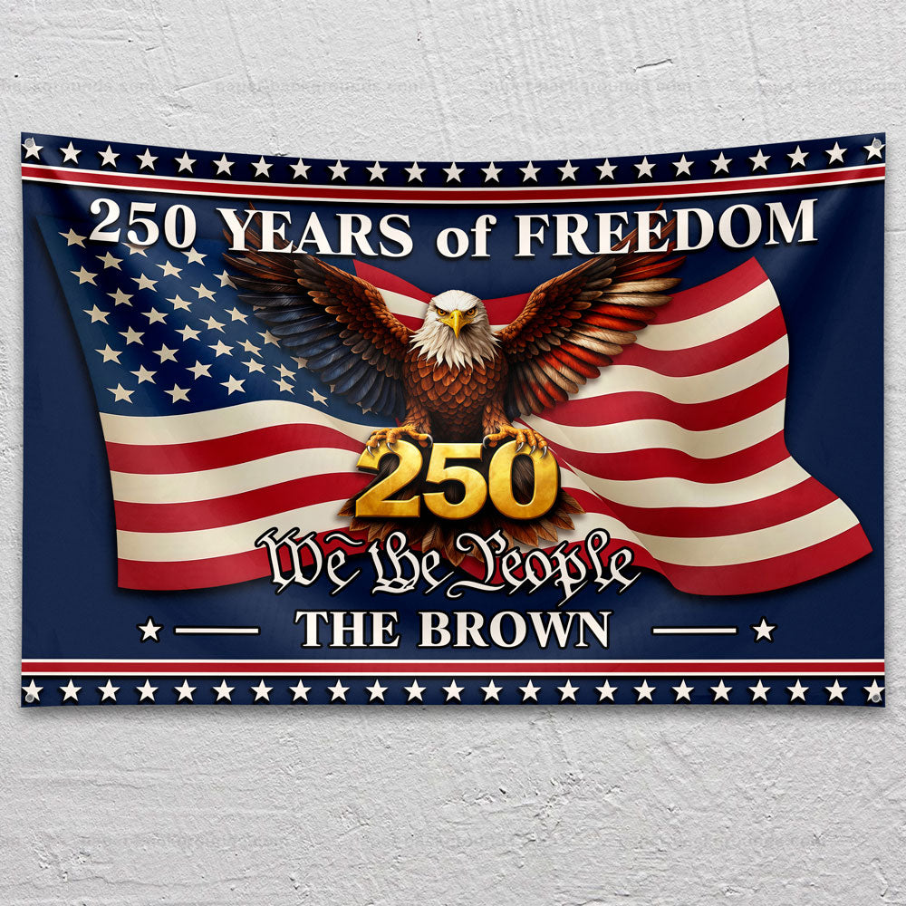 Celebrate American heritage with this striking personalized house flag honoring 250 years of freedom. Featuring the iconic "We The People" design, this premium flag combines patriotic pride with custom personalization. Perfect as a meaningful gift for history enthusiasts, patriots, or anyone who cherishes American values. Worldwide shipping available.