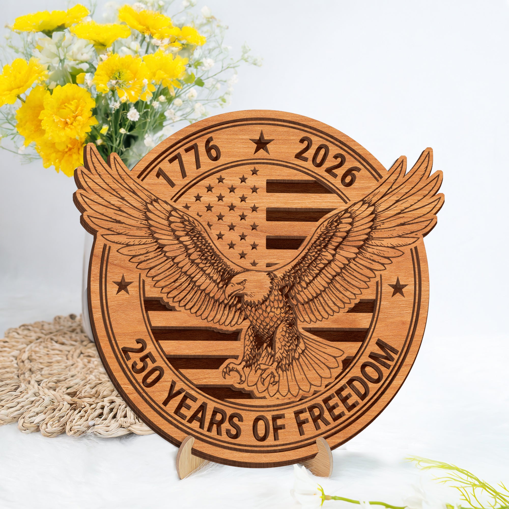 Commemorate a historic milestone with this USA 250th Anniversary 1776–2026 Wooden Plaque. Designed with a timeless patriotic theme, this plaque is a meaningful décor piece that honors 250 years of American independence. Perfect for displaying in your home, office, or as a thoughtful gift, it adds a classic and proud touch to any space. A lasting keepsake to celebrate America’s 250th anniversary and the spirit of freedom.