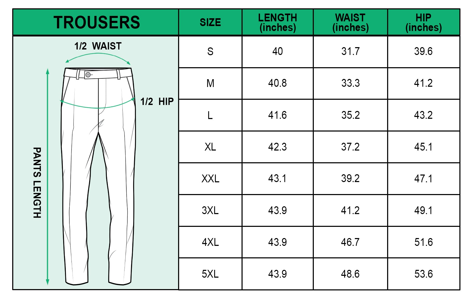 • Size guide: