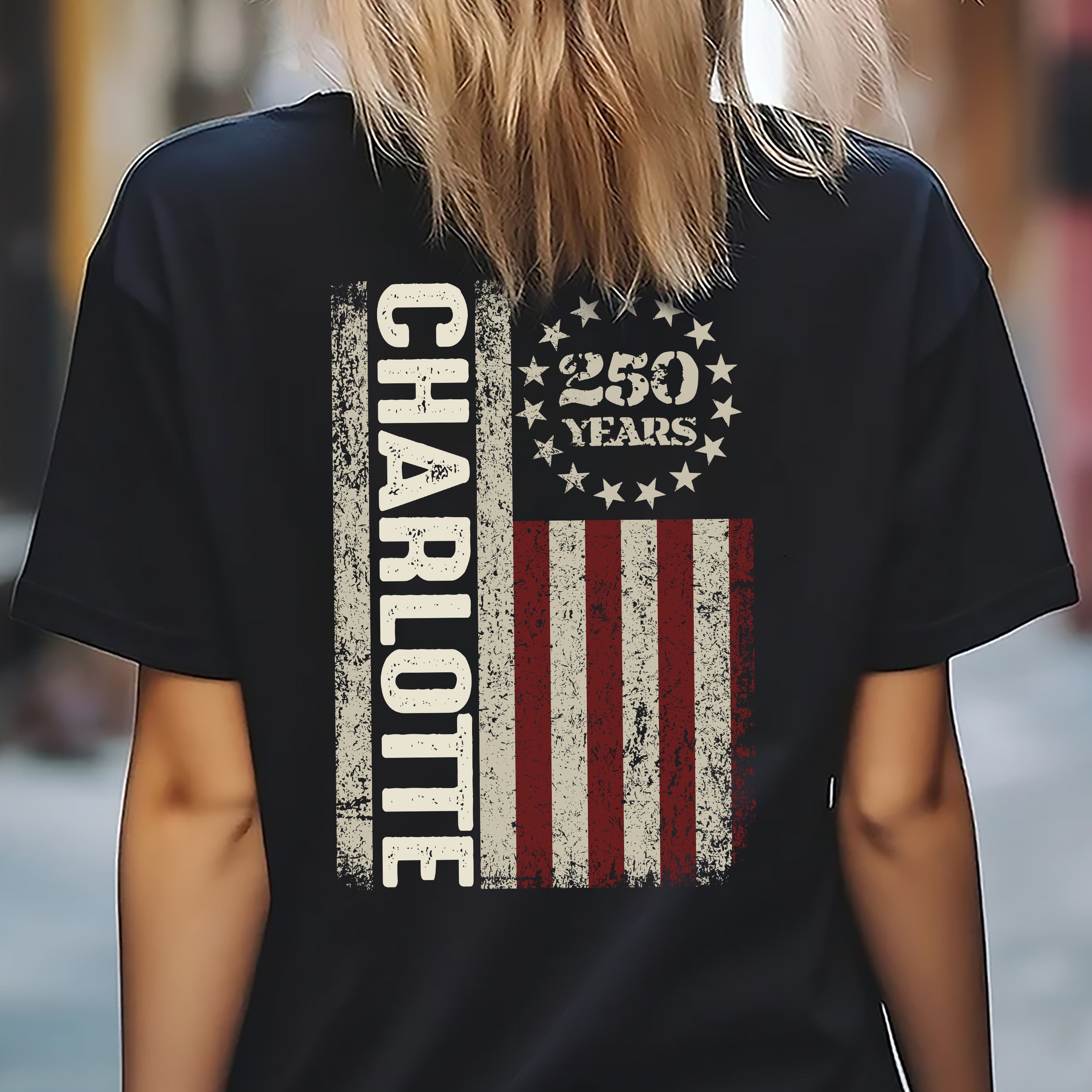 Celebrate America's legacy with this striking dark shirt featuring a bold 250 Years design on the back. Perfect for patriotic occasions, this personalized tee lets you add your name for a custom touch that's uniquely yours.