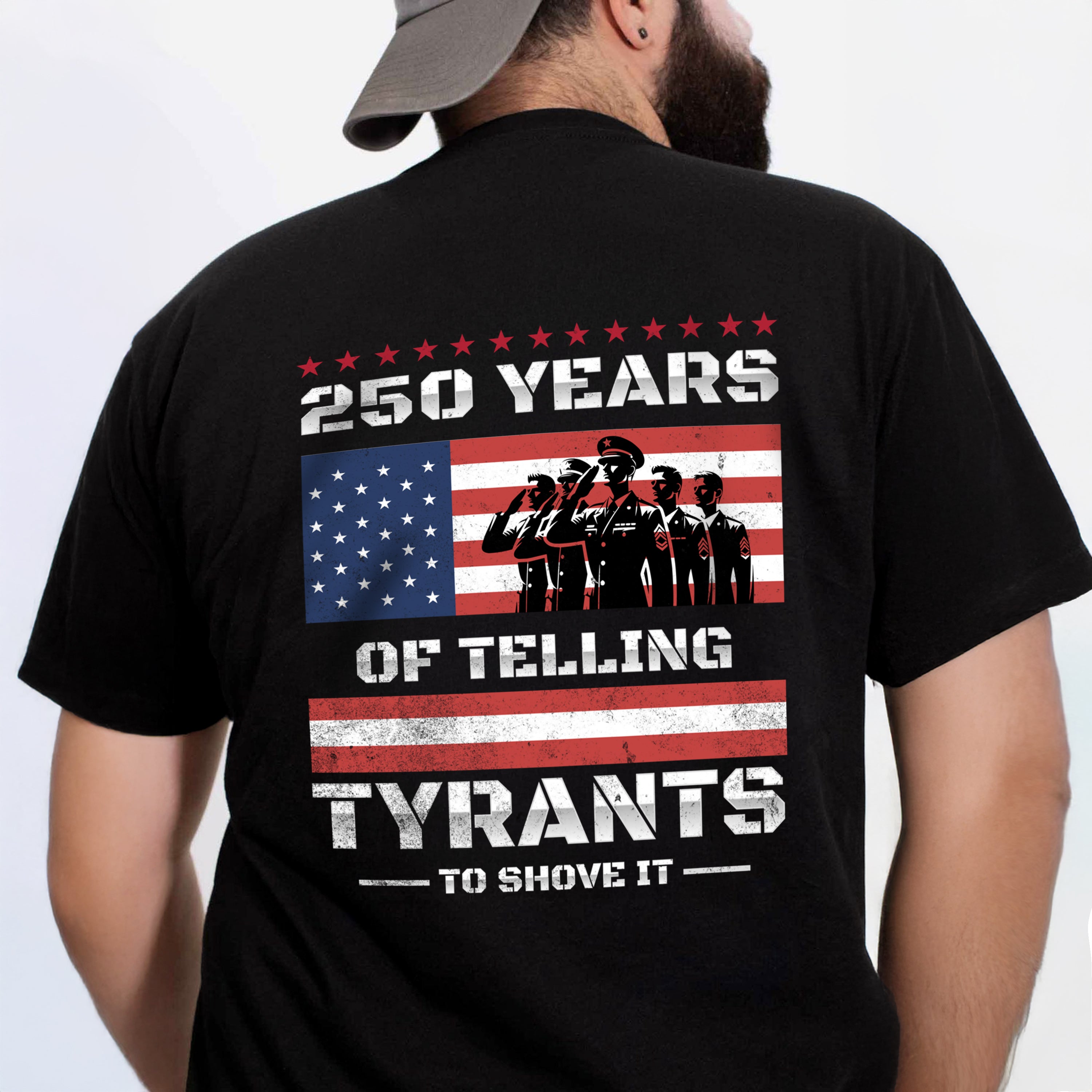Celebrate 250 years of American heritage with this striking dark shirt, perfect for showing pride during any patriotic occasion. Designed to honor the USA's 250th anniversary, it makes a meaningful gift that combines style and history. Whether for yourself or a loved one, this shirt is a powerful way to commemorate a monumental milestone.