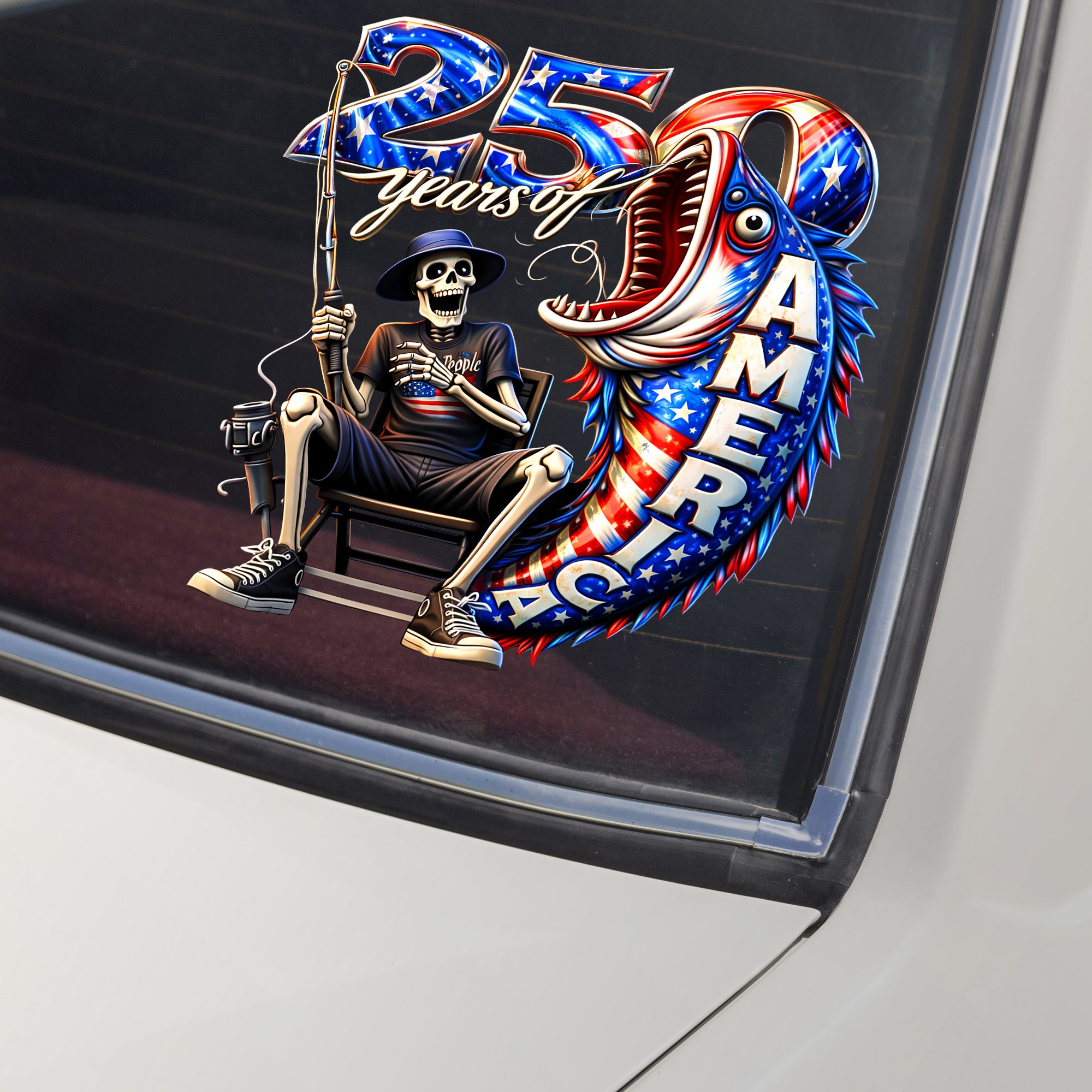 Celebrate American heritage with this striking "We The People" fisherman window decal. Featuring bold, patriotic design commemorating 250 years of freedom, this durable sticker transforms any vehicle into a rolling tribute to independence and tradition. Perfect for truck owners, fishing enthusiasts, and proud Americans who want to showcase their values on the road. Easy to apply, weather-resistant, and built to last through seasons of sun and rain. An ideal gift for the patriot in your life who appreciates meaningful, quality décor that sparks conversation.