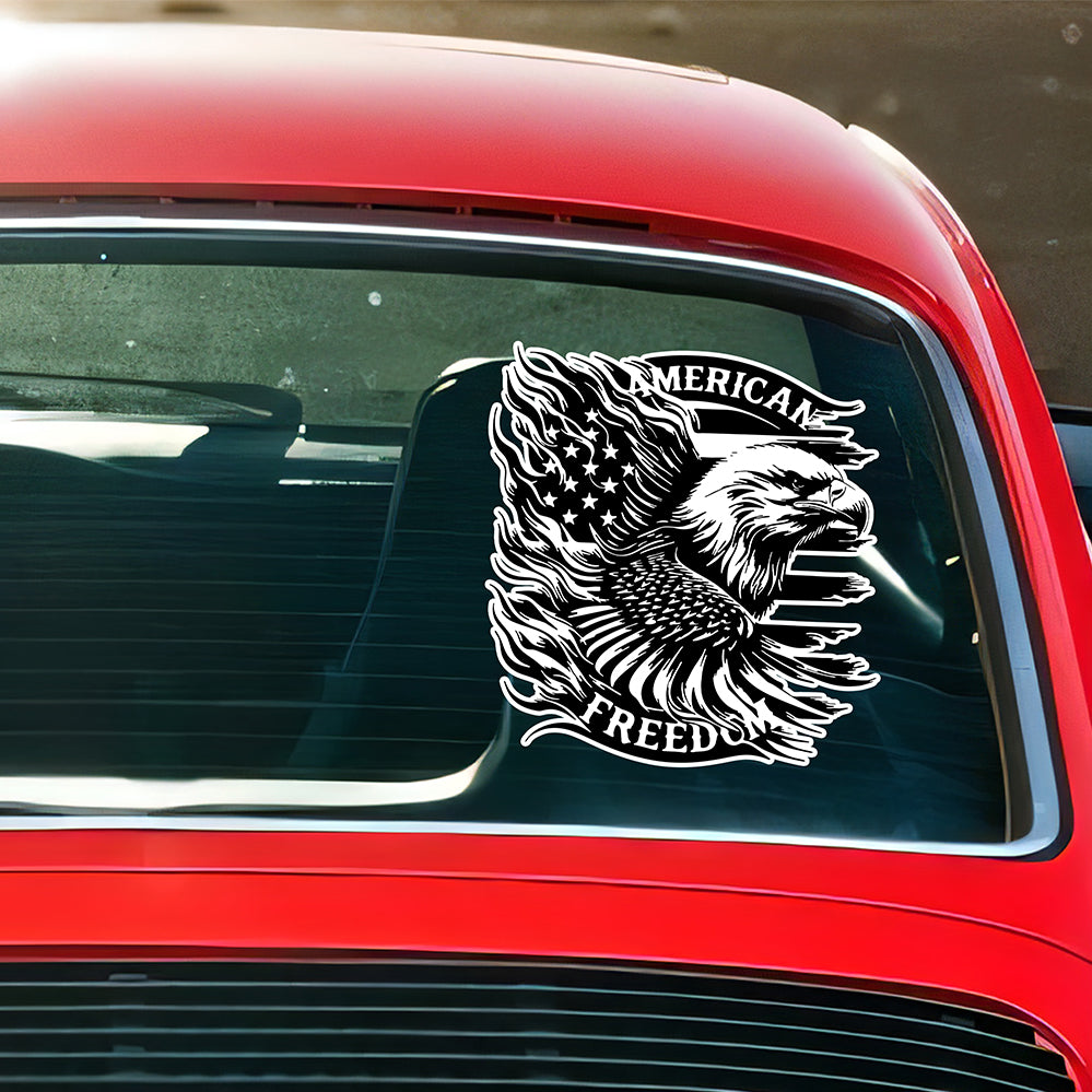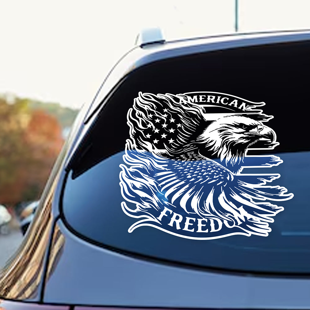 Display your patriotic pride with this bold American Freedom USA Flag car window decal sticker. Crafted for durability, this eye-catching design features a striking patriotic motif that makes a powerful statement on any vehicle. The high-quality vinyl construction resists fading, peeling, and harsh weather conditions, ensuring your message stays vibrant for years. Easy to apply and remove without residue, it's the perfect way to showcase your American spirit on the road. Whether you're commuting daily or hitting the highway, let your vehicle reflect your values with this standout patriotic decal.