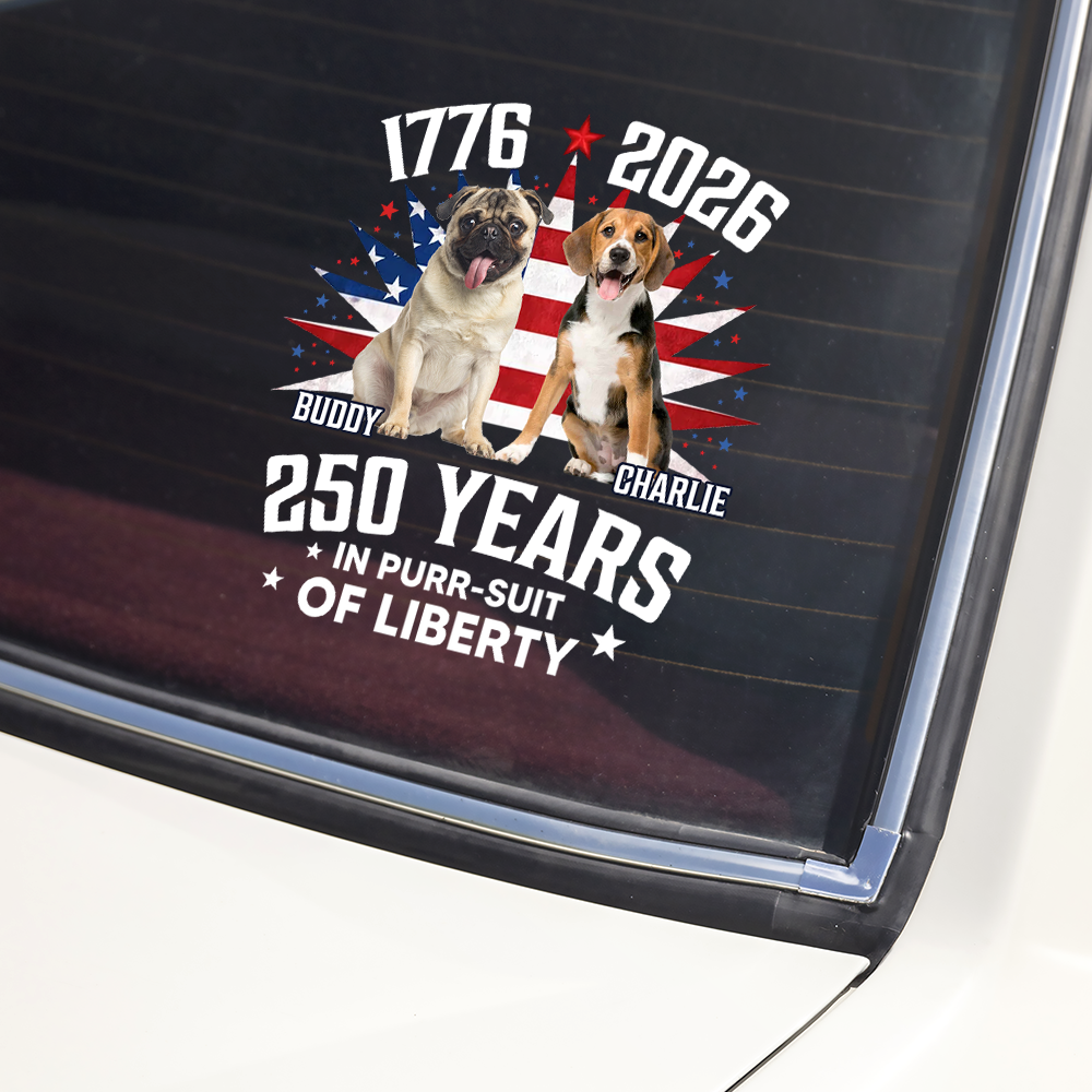 Celebrate 250 years of American independence with this eye-catching personalized car sticker. Perfect for patriotic dog lovers, this durable decal lets you showcase your love for country and canine companion in style. Whether you're heading to a Fourth of July celebration or displaying pride year-round, this custom sticker makes a bold statement on any vehicle. High-quality vinyl construction ensures long-lasting color and weather resistance. An ideal gift for veterans, history enthusiasts, and devoted dog owners who want to express their values on the road.