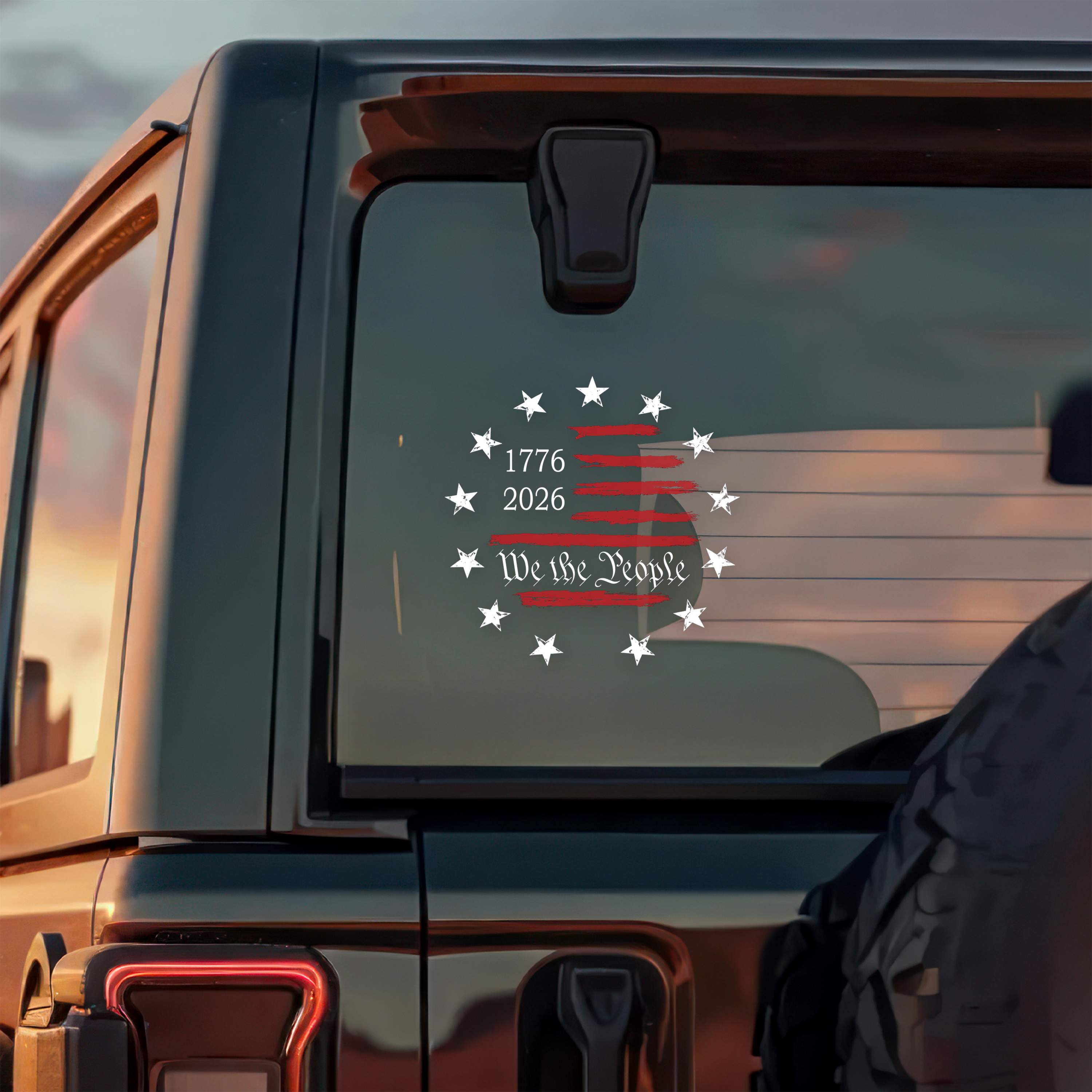 Commemorate America's 250th anniversary with this patriotic car window decal. Featuring 1776-2026, this durable sticker displays your national pride while resisting weather and fading. Easy to apply and remove, it's the perfect way to celebrate this historic milestone on your vehicle.