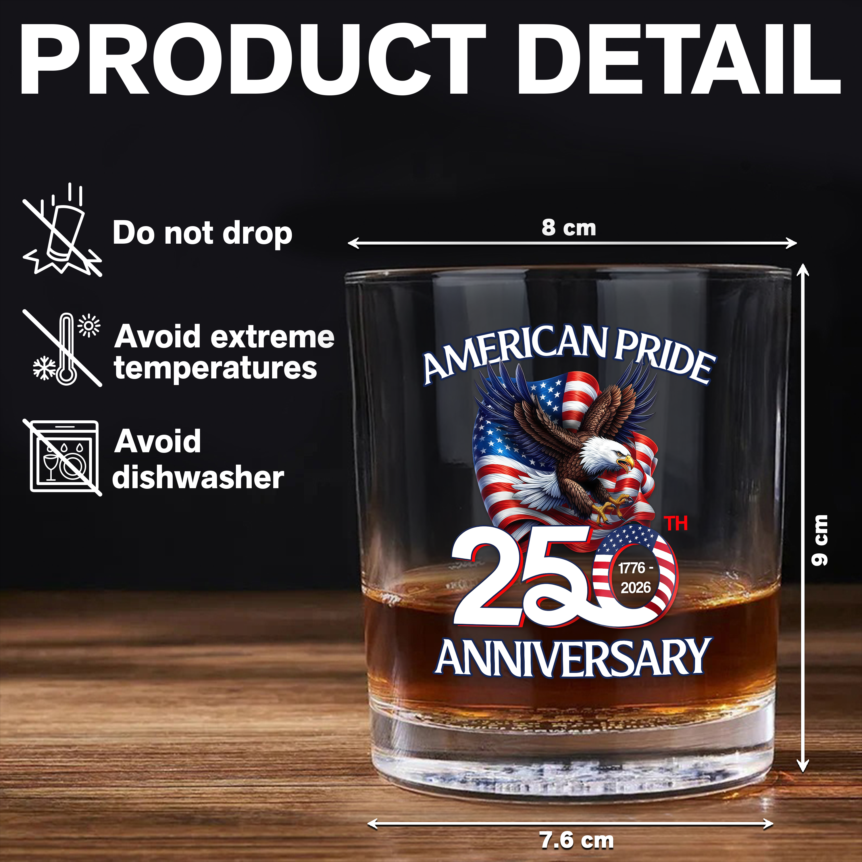 Celebrate America's 250-year legacy with this commemorative whiskey glass, a perfect tribute to the nation's enduring spirit. Featuring bold 1776-2026 anniversary design, this elegant glass makes an unforgettable gift for history enthusiasts, patriots, and whiskey lovers alike. Whether displayed on a shelf or used for special occasions, it honors the journey of the United States with timeless style. Ideal for collectors seeking meaningful pieces that spark conversation and connection to American heritage.