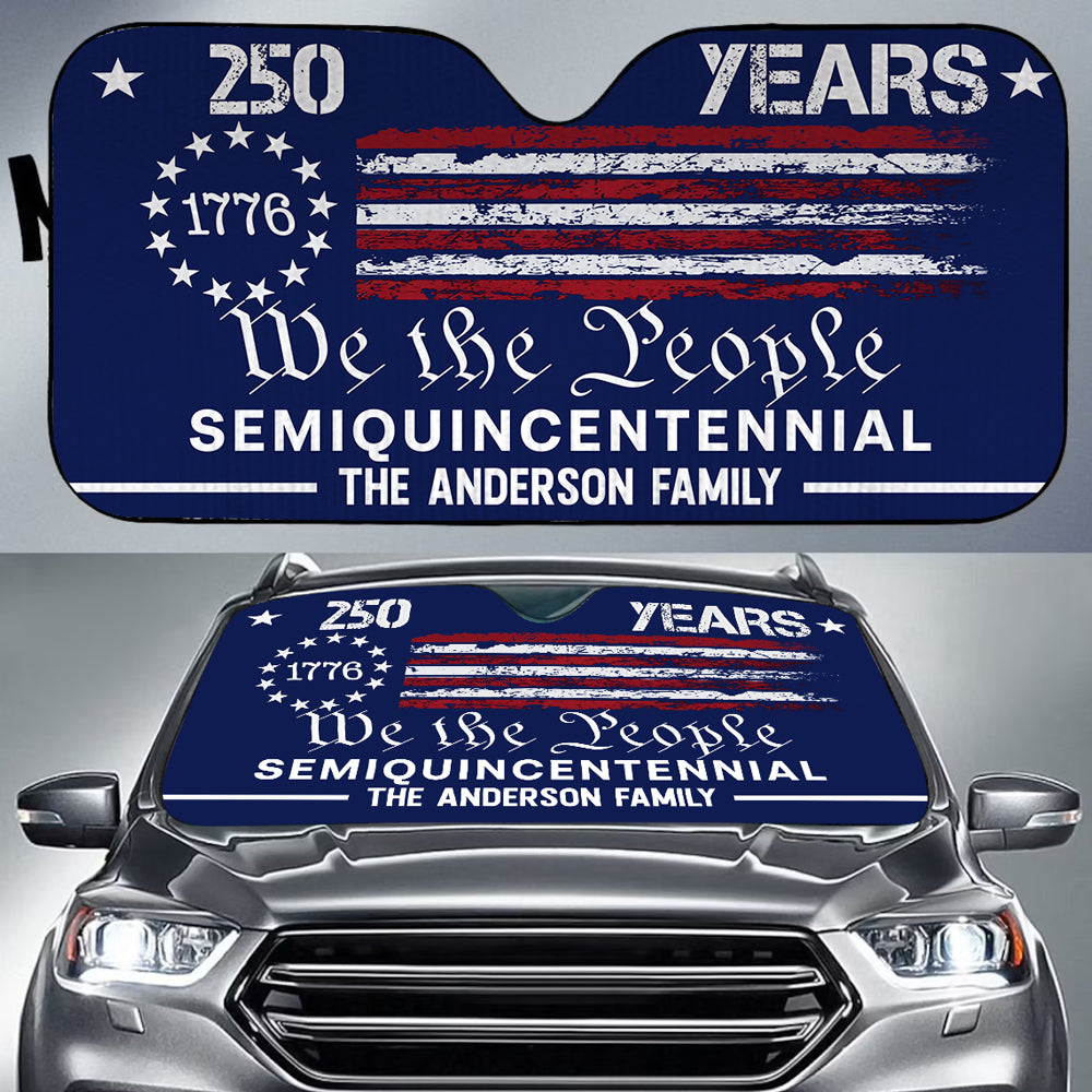 Celebrate American heritage and family pride with this custom car sunshade featuring a bold "We The People" design commemorating 250 years of history. Personalize it with your family name to create a one-of-a-kind gift that combines patriotic spirit with practical sun protection. Perfect for road trips, daily commutes, or displaying your values in style. This durable sunshade keeps your vehicle cool while making a statement about what matters most—family and country. An ideal present for history enthusiasts, patriotic Americans, and anyone who loves meaningful, personalized gifts that spark conversation.