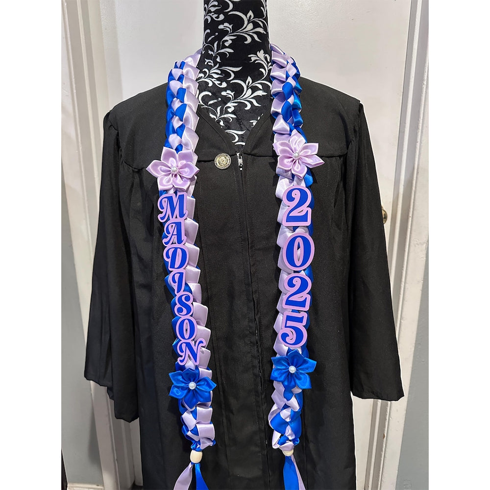 - Hand braided ribbon leis made with 7/8 inch single faced satin ribbon. This listing is for 2 colors per lei. Absolutely perfect for graduations and special occasion!