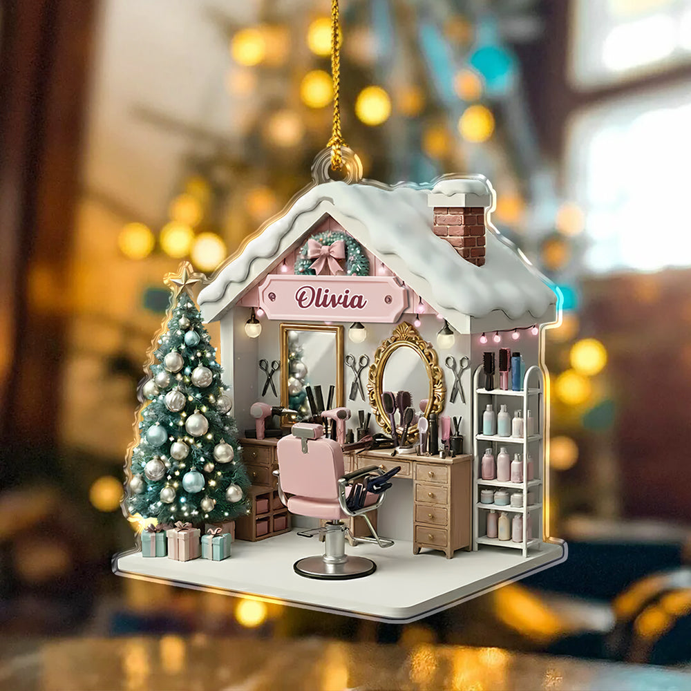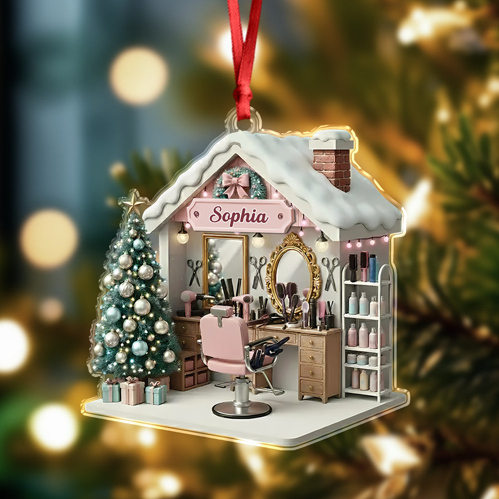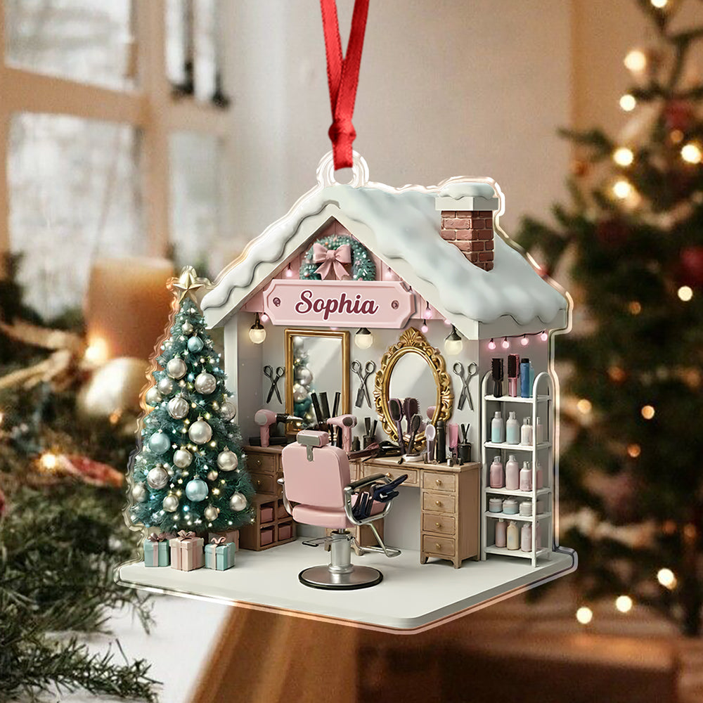 Celebrate the holidays with a touch of professional pride! This personalized acrylic ornament features a custom name design perfect for hair salon owners and stylists. Crafted from durable acrylic with vibrant, long-lasting colors, it's an elegant keepsake that honors your passion for beauty and style. Whether decorating your salon, home, or gifting to a fellow professional, this unique ornament adds a personal sparkle to any Christmas tree. A meaningful way to commemorate your craft and create lasting memories year after year.