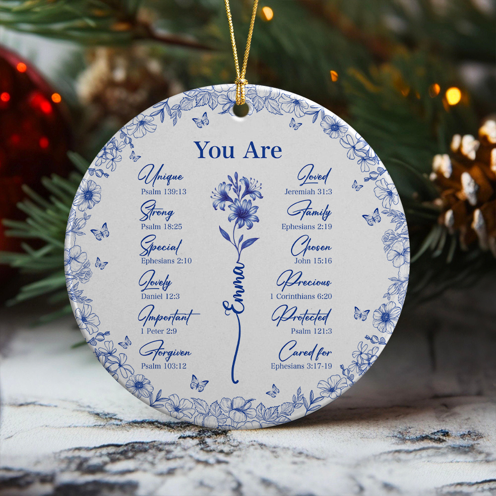 Celebrate your faith with this elegant Christian Toile De Jouy style ceramic ornament. Personalized to reflect your unique spirit, it adds a meaningful touch to any space or holiday decor. Crafted with care and timeless design, this ornament helps inspire and remind you of God's message every day. Perfect for gifting or personal reflection, it blends tradition with personal significance beautifully.