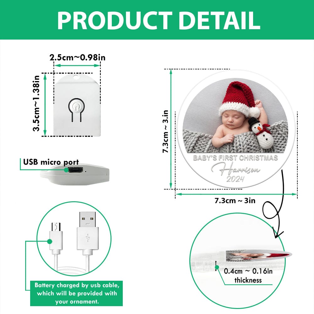 Celebrate baby's first Christmas with our Custom Photo Baby First Christmas Ornament! Made with love, this LED acrylic ornament features your favorite photo of your little one and makes for a cute and memorable Christmas gift. Capture the love and joy of the holiday season with this special ornament.