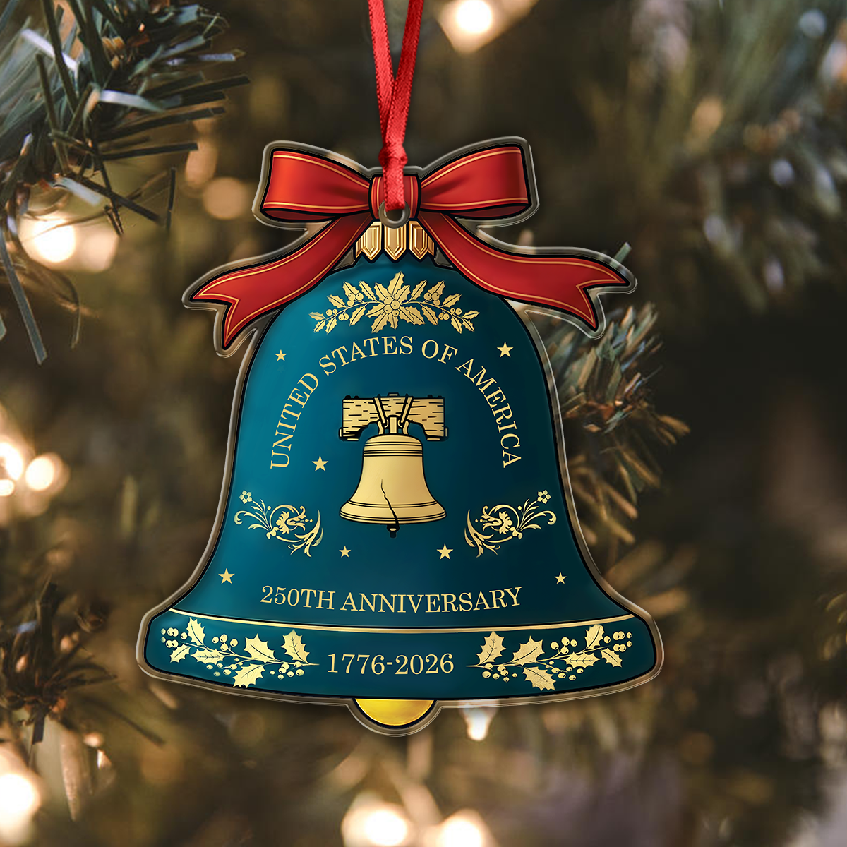 Celebrate America’s 250th anniversary with this beautifully crafted bell ornament, a perfect keepsake for your patriotic celebrations. This elegant decor piece enhances any space with a meaningful tribute to the nation’s milestone. Thoughtfully designed for gifting, it’s an ideal way to share pride and commemorate this historic occasion with loved ones. Add a touch of heritage to your holiday or special event décor with this timeless ornament.