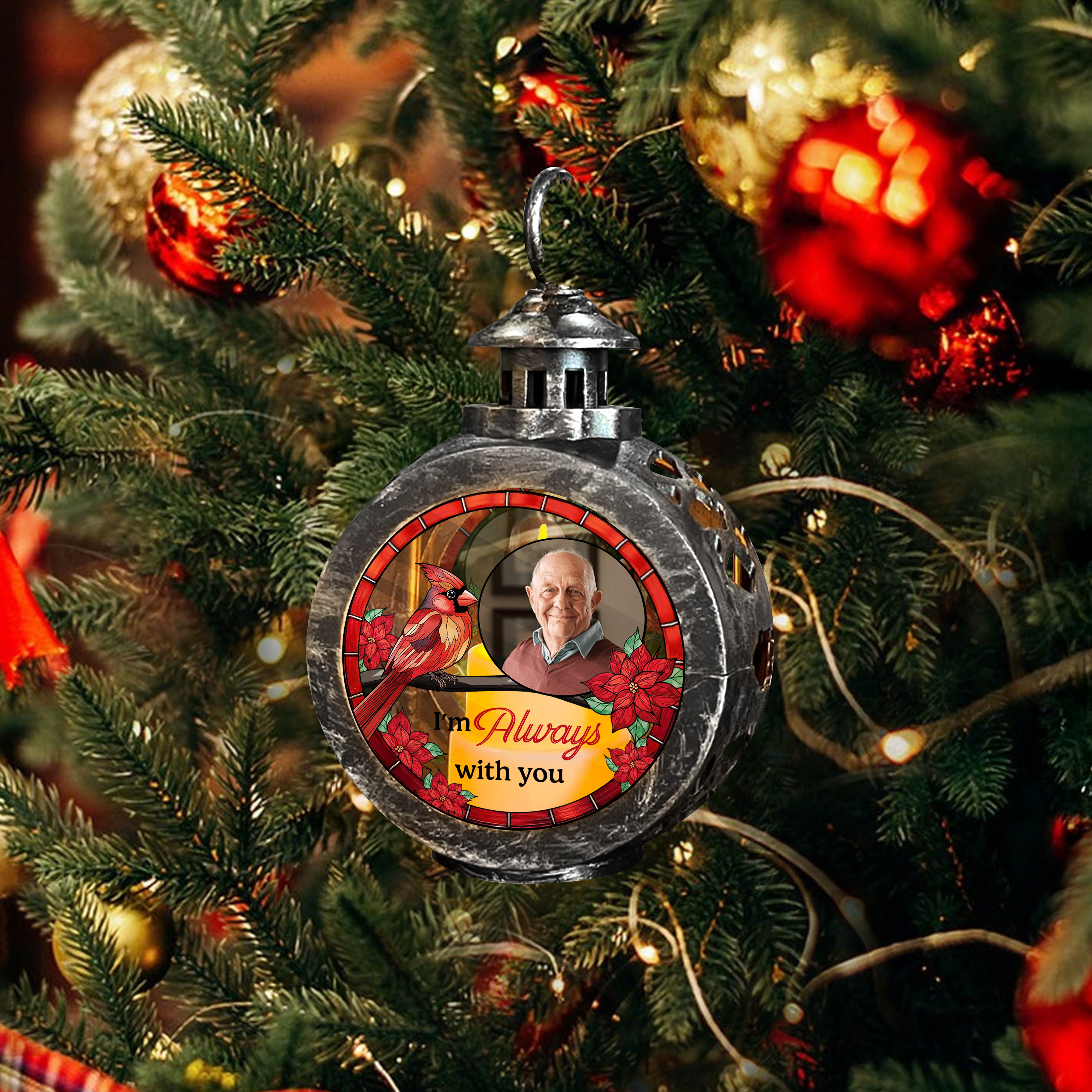 Honor the memory of your loved ones with this Custom Photo I'm Always With You Candlelight Lantern Ornament. Personalized with a cherished photo, it creates a warm, comforting glow, perfect for keeping their presence close. This thoughtful tribute offers solace and remembrance, making it an ideal memorial gift that brings peace and heartfelt connection to any home.