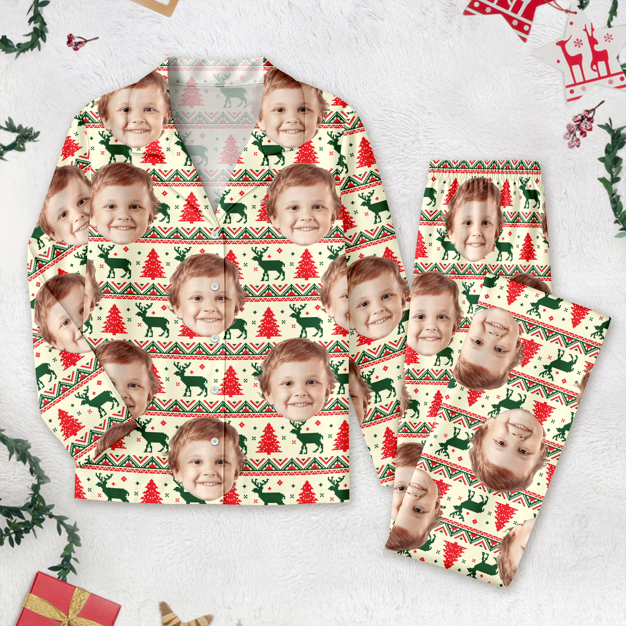 Create unforgettable holiday memories with custom face photo Christmas pajamas that bring your family together. These cozy, personalized pajamas feature your favorite photos printed on premium fabric, making them the perfect gift for everyone on your list. Whether you're gathering for festive photos, holiday parties, or quiet nights by the fire, these matching sets add warmth and laughter to your celebrations. Soft, comfortable, and uniquely yours—transform ordinary pajama nights into extraordinary family moments this Christmas season.