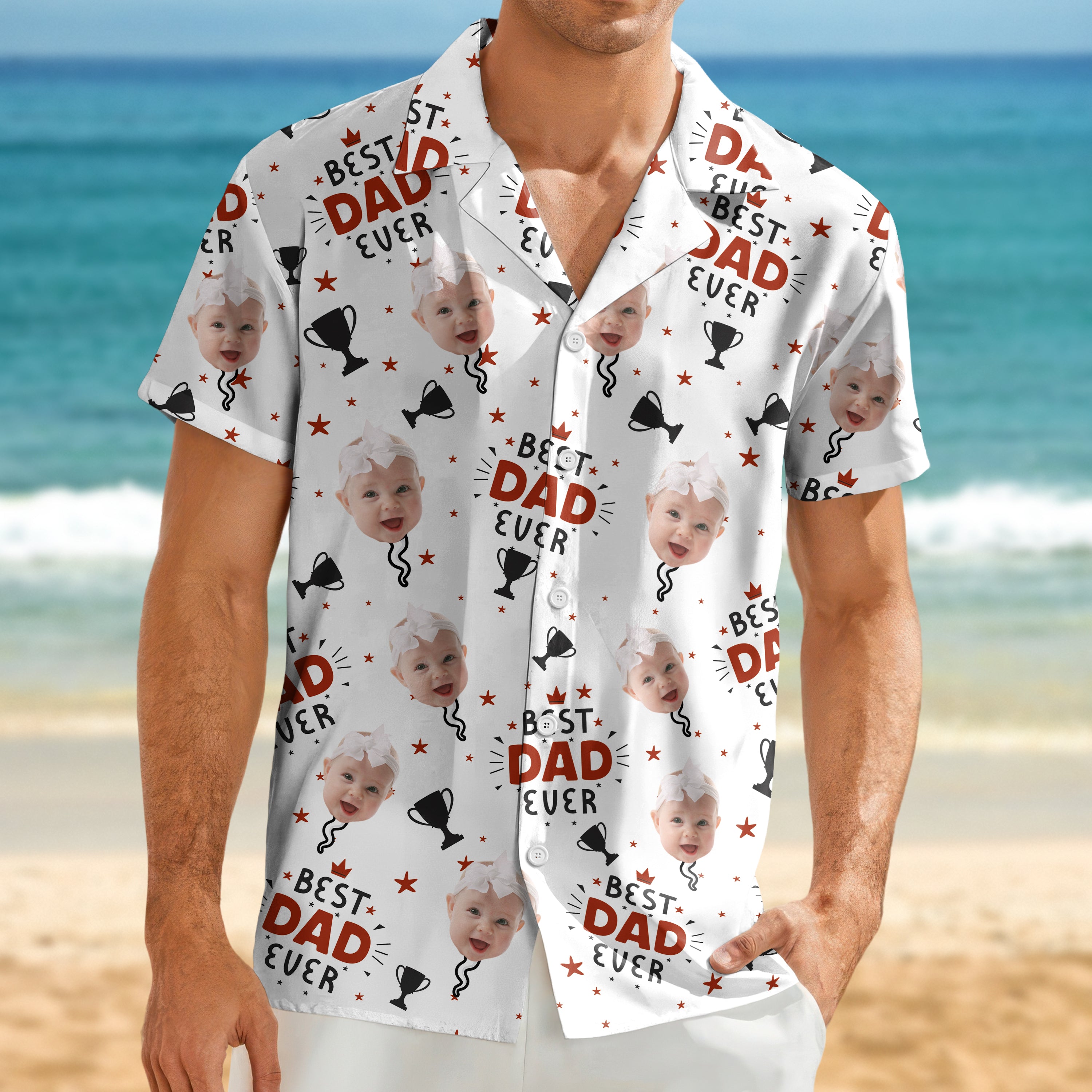 Surprise Dad with a personalized Hawaiian shirt featuring your favorite photo together! This custom "Best Dad Ever" design isn't just a shirt—it's a wearable memory he'll treasure. Perfect for Father's Day, birthdays, or just because he deserves something as unique as he is. Order now to see his face light up when he unwraps this thoughtful, one-of-a-kind gift.