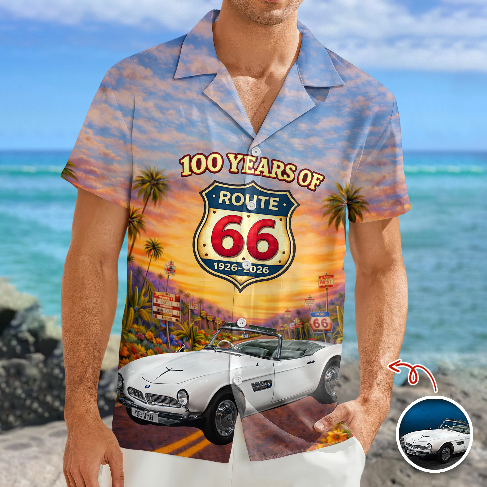Celebrate a century of iconic American history with this custom photo 100 Years of Route 66 Hawaii shirt. Perfect for road trip enthusiasts and nostalgia lovers, this vibrant Hawaiian-style shirt combines classic Americana with modern customization. Feature your favorite Route 66 memories or photos directly on the fabric, creating a one-of-a-kind wearable tribute to the legendary highway. Crafted for comfort and style, this shirt makes an unforgettable gift for travelers, history buffs, and anyone who cherishes the spirit of the open road. Stand out in a crowd while honoring the timeless legacy of Route 66.