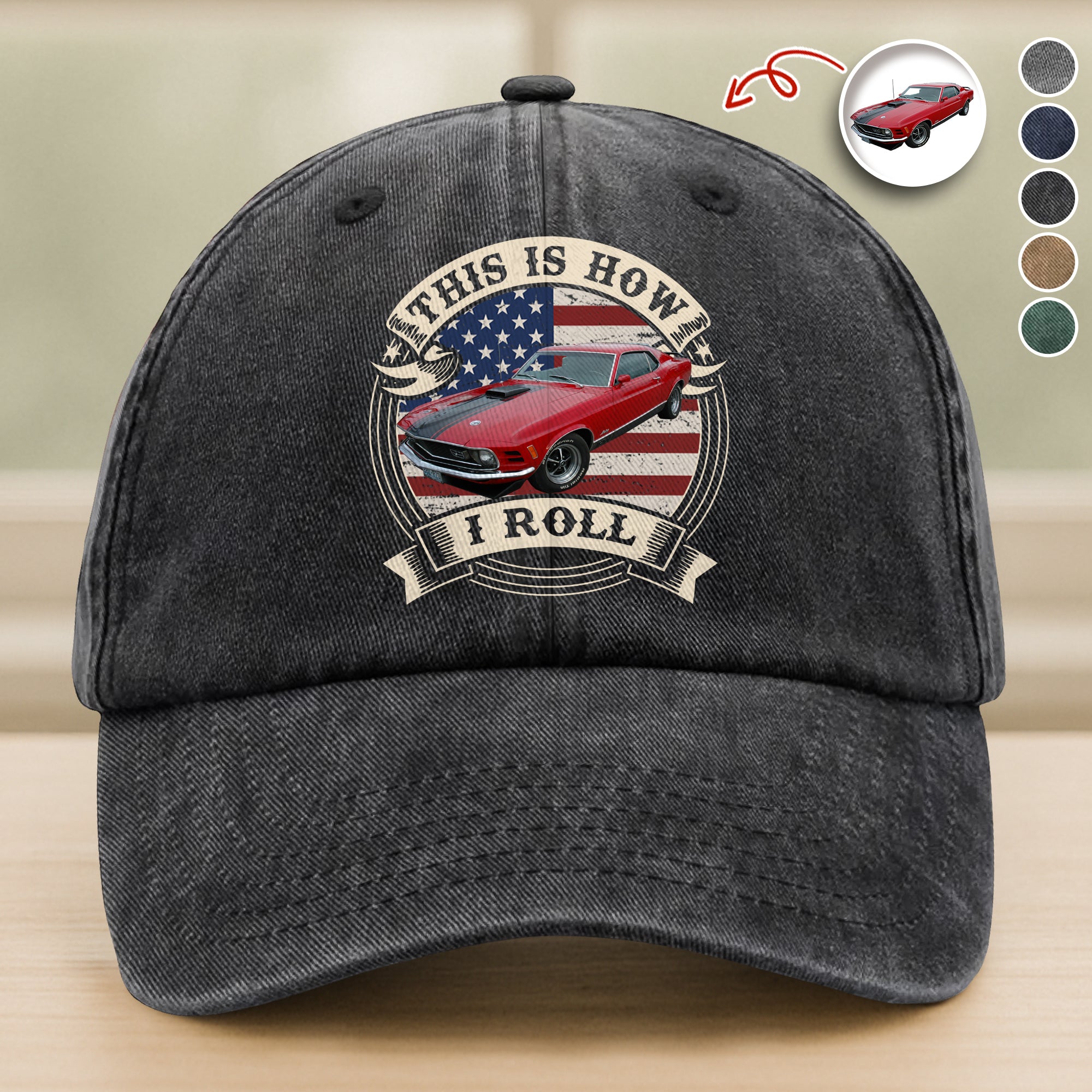 This Is How I Roll - Custom Car Photo Route 66 Vintage Washed Denim Baseball Cap CH07 896426