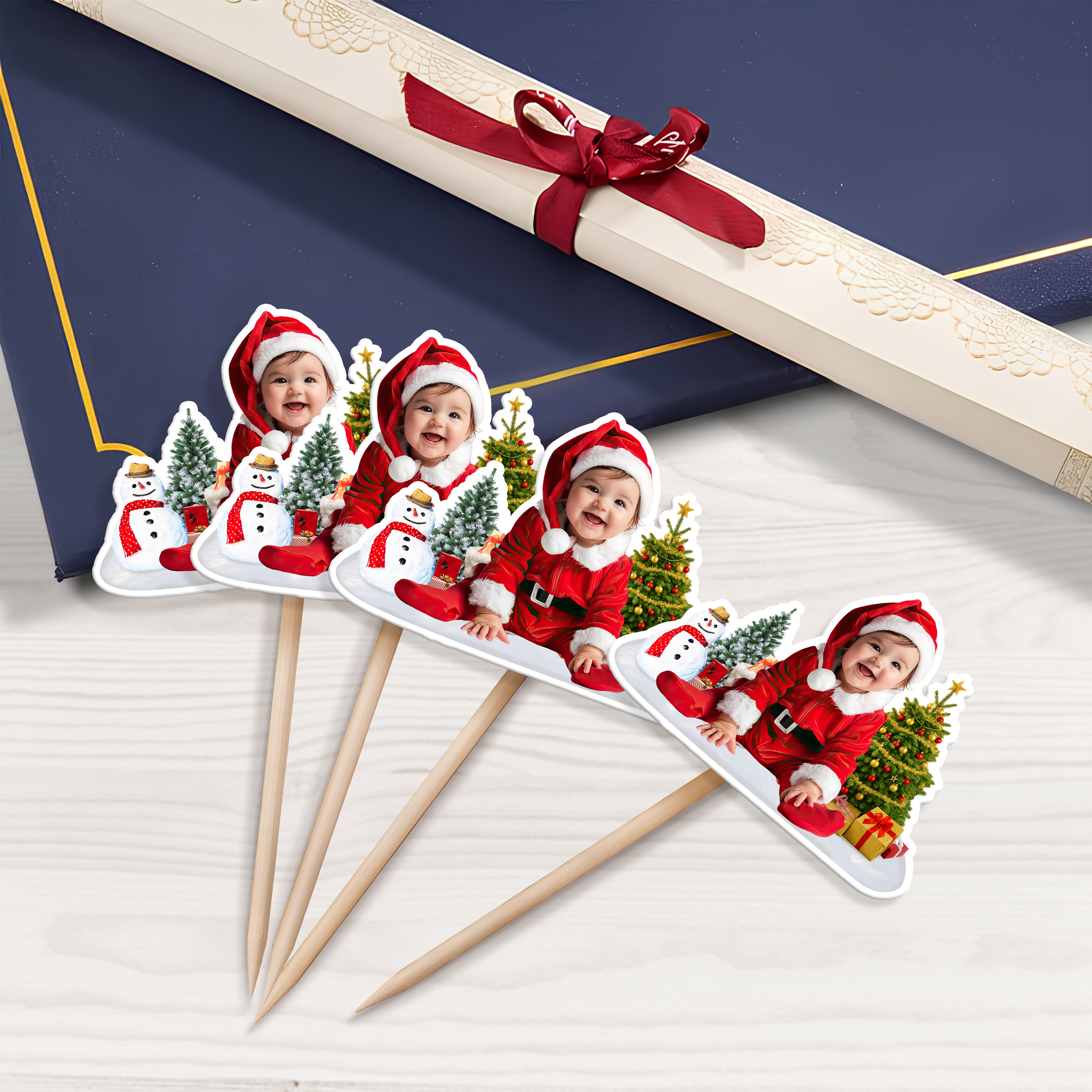 Celebrate your little one’s first Christmas with a personalized touch using this Custom Photo Cute Baby Christmas Cupcake Topper. Featuring your baby’s photo, it adds a heartwarming and unique charm to holiday treats, making every cupcake a memorable keepsake. Perfect for family gatherings or as a thoughtful gift, this adorable topper transforms ordinary cupcakes into festive treasures everyone will adore.