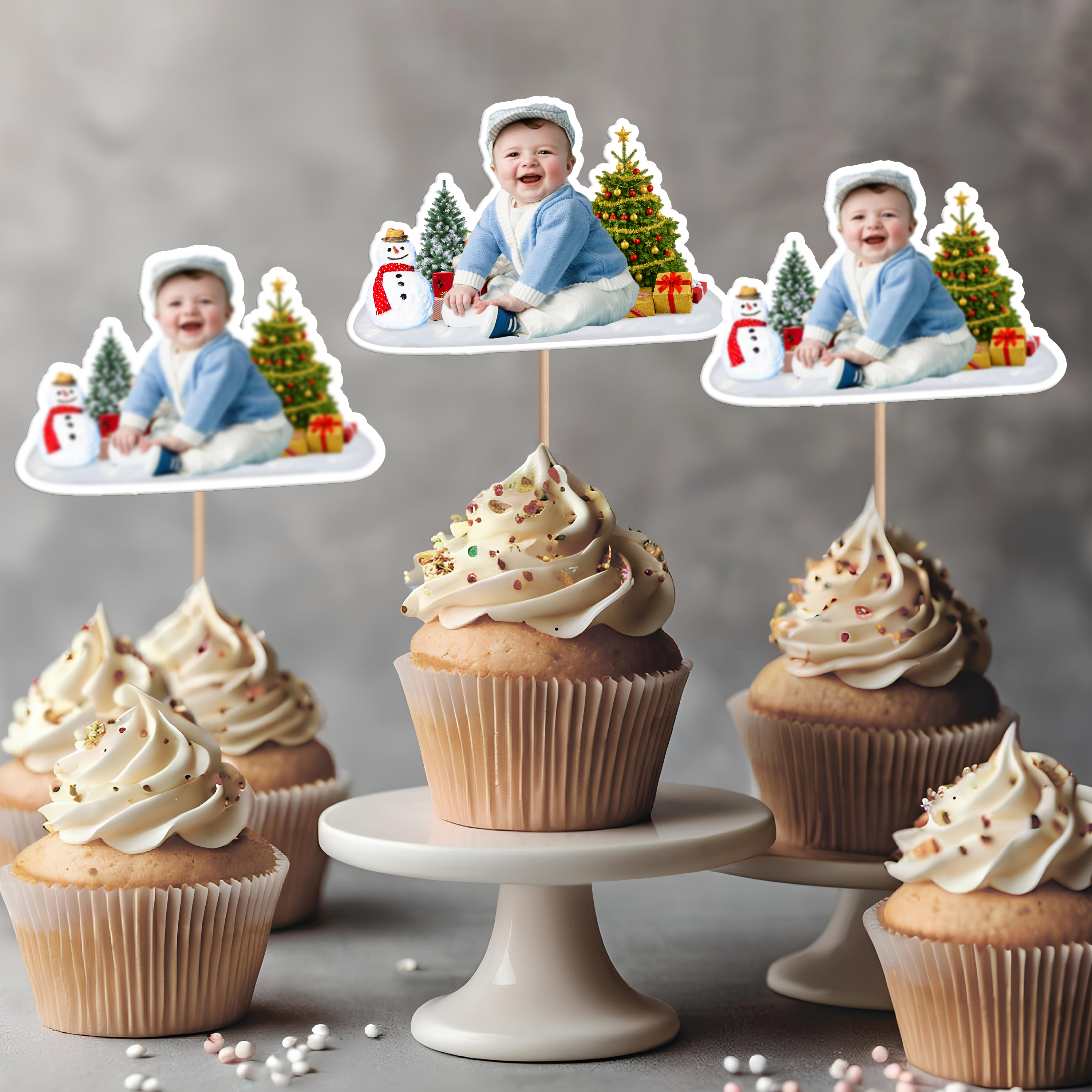 Custom Photo Cute Baby Christmas Cupcake Topper CH07 899770