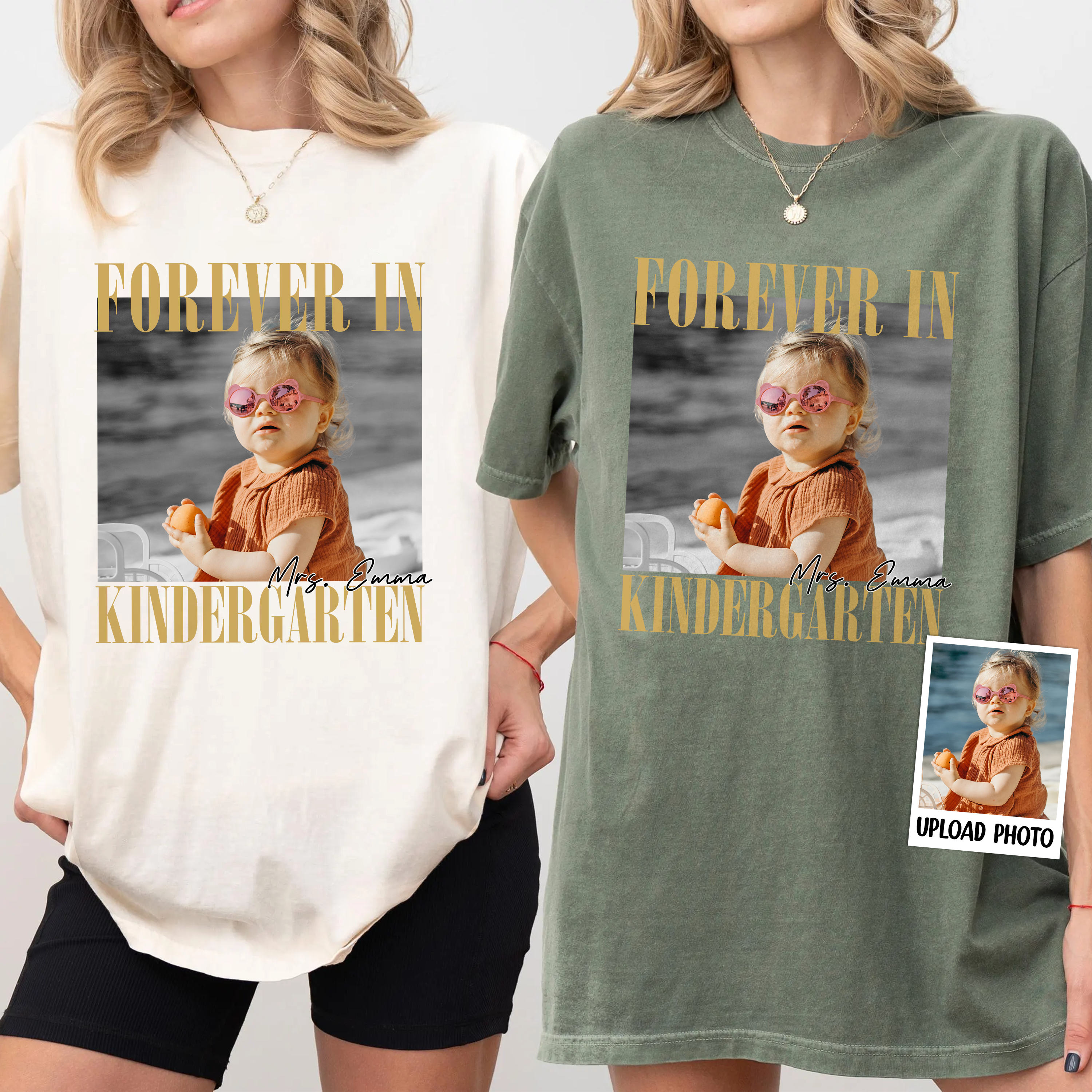 Dress your little one in charming comfort with this Custom Baby Photo Forever in Kindergarten Retro Style Shirt. Soft and cozy, it keeps your child snug while showcasing a unique, personalized photo design that adds a playful, nostalgic touch. Perfect for everyday wear, this adorable shirt blends style and sentiment to create a keepsake your family will cherish.