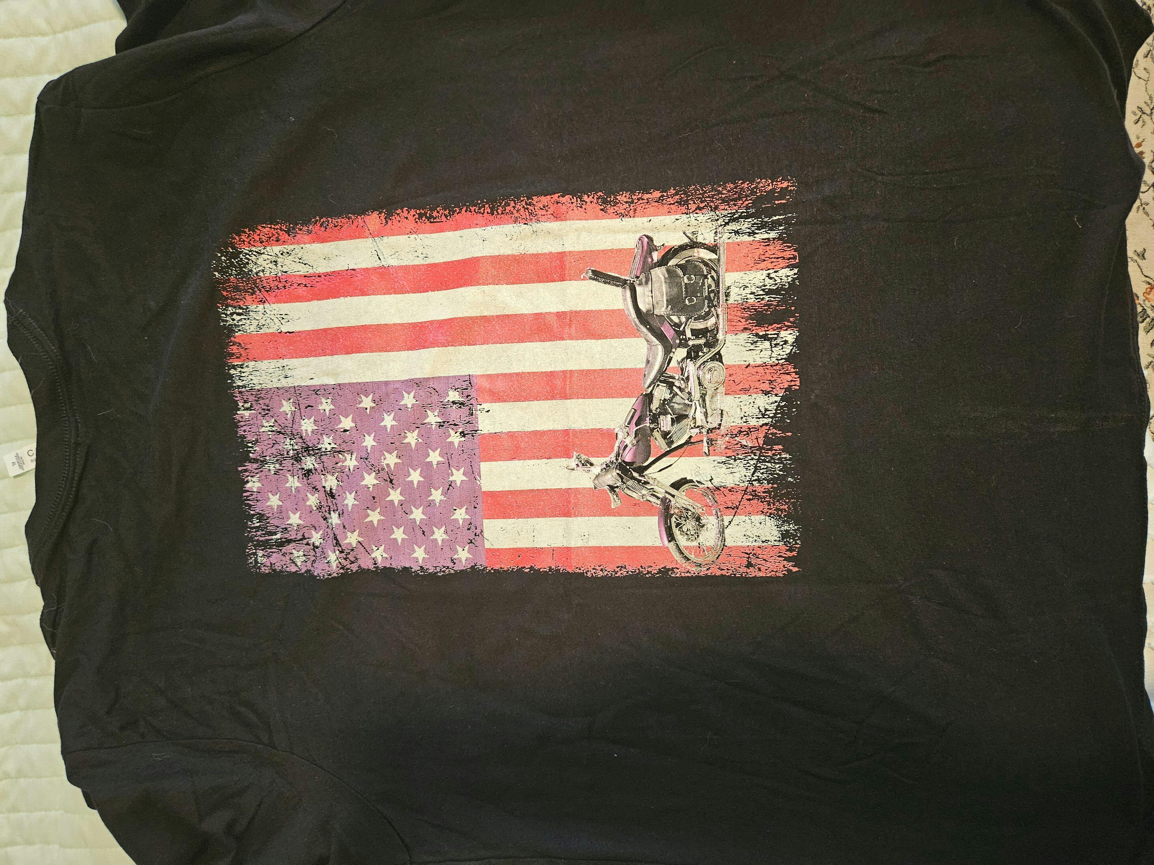• Double-needle stitched neckline, bottom hem, and sleeves.