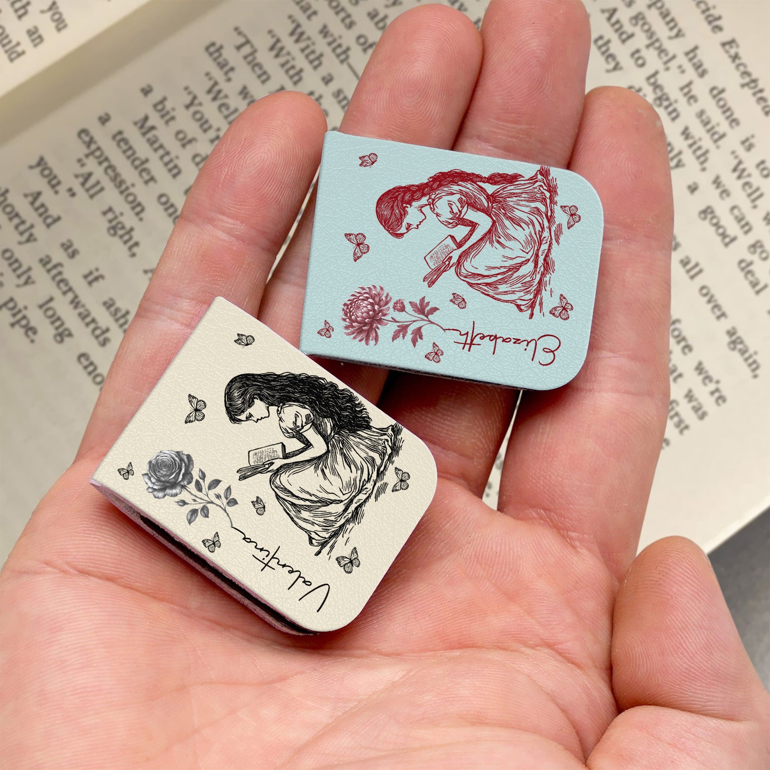 Enhance your reading experience with this personalized leather magnetic bookmark, crafted especially for book lovers. Featuring a delicate Birth Flower design inspired by Toile De Jouy, it combines elegant style with practical function. The magnetic closure ensures your page stays secure without damaging your book, while the smooth leather offers durability and a luxurious feel. Perfect as a thoughtful gift or a unique addition to your own collection, this bookmark celebrates your passion for reading with both beauty and convenience.