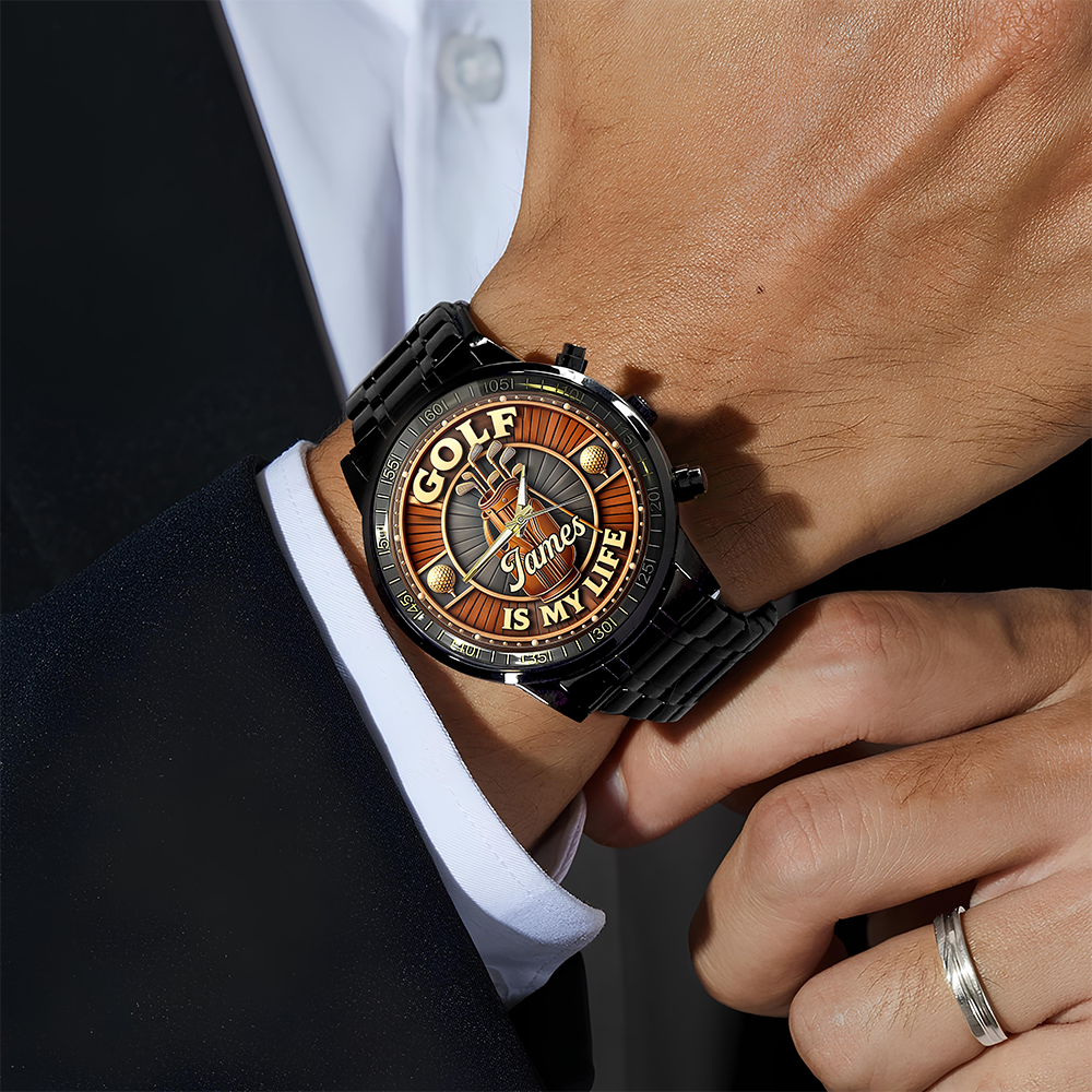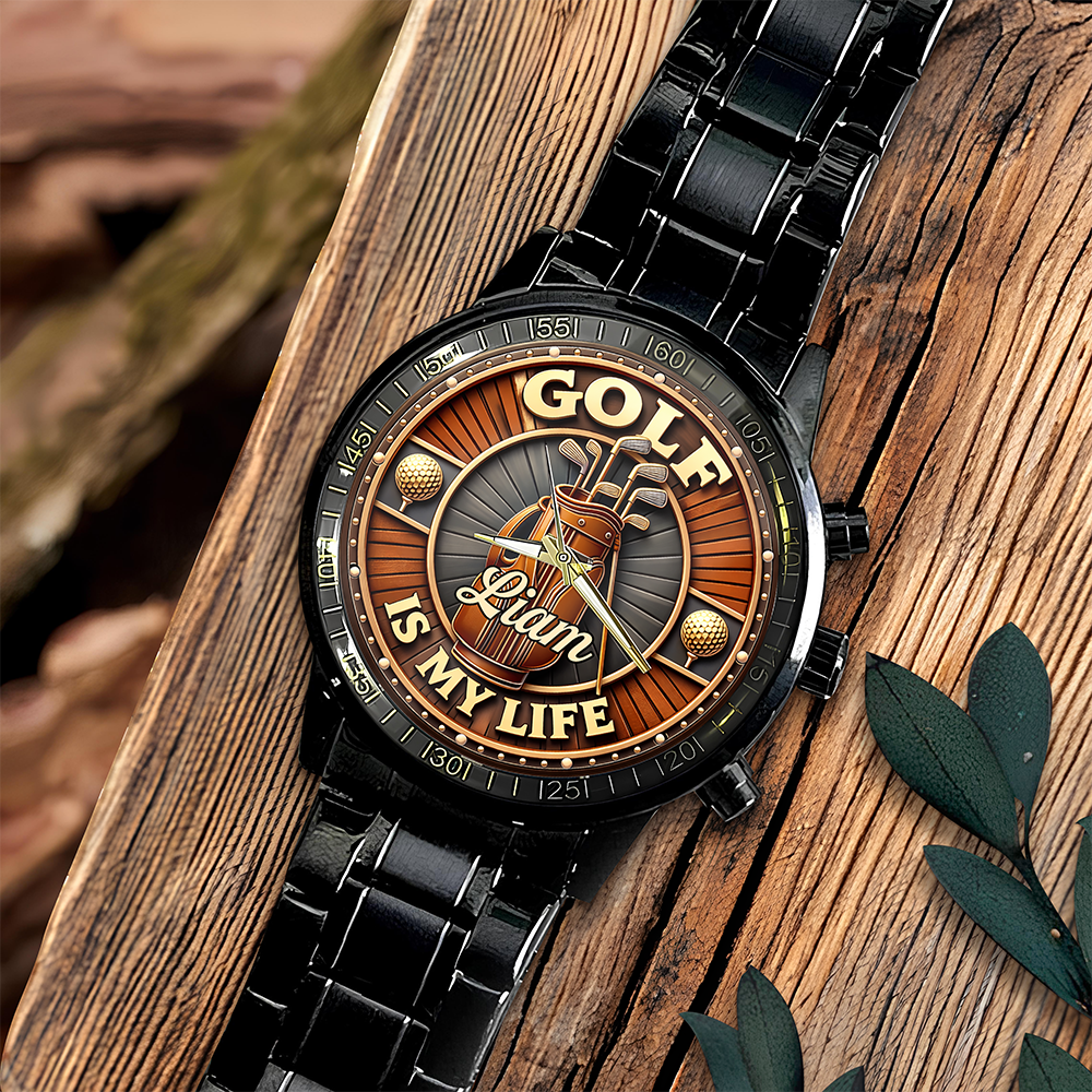 For the golfer who lives and breathes the game, this personalized wrist watch combines passion with practicality. Featuring a custom name engraved alongside the "Golf Is My Life" theme, it's a bold statement piece that celebrates your dedication to the sport. The sleek design works equally well on the course or in everyday wear, making it the perfect accessory for someone who never stops thinking about their next round. A meaningful gift that speaks to any golfer's heart—wear your love of the game on your wrist.