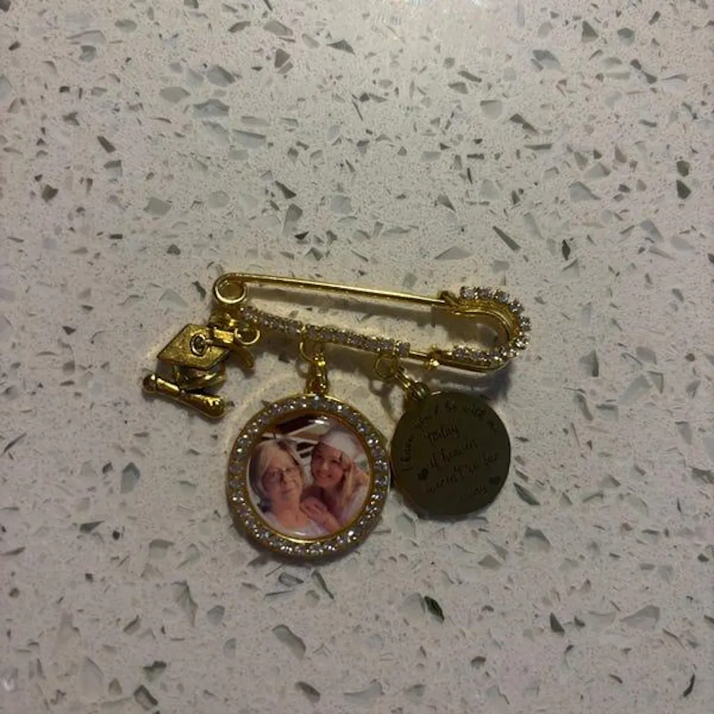 Perfect as a gift for new graduates, this elegant pin features a graduation cap design with a miniature cap and degree scroll, symbolizing the milestone they’ve achieved. Wear it on graduation day or display it as a memory of their journey and hard work.