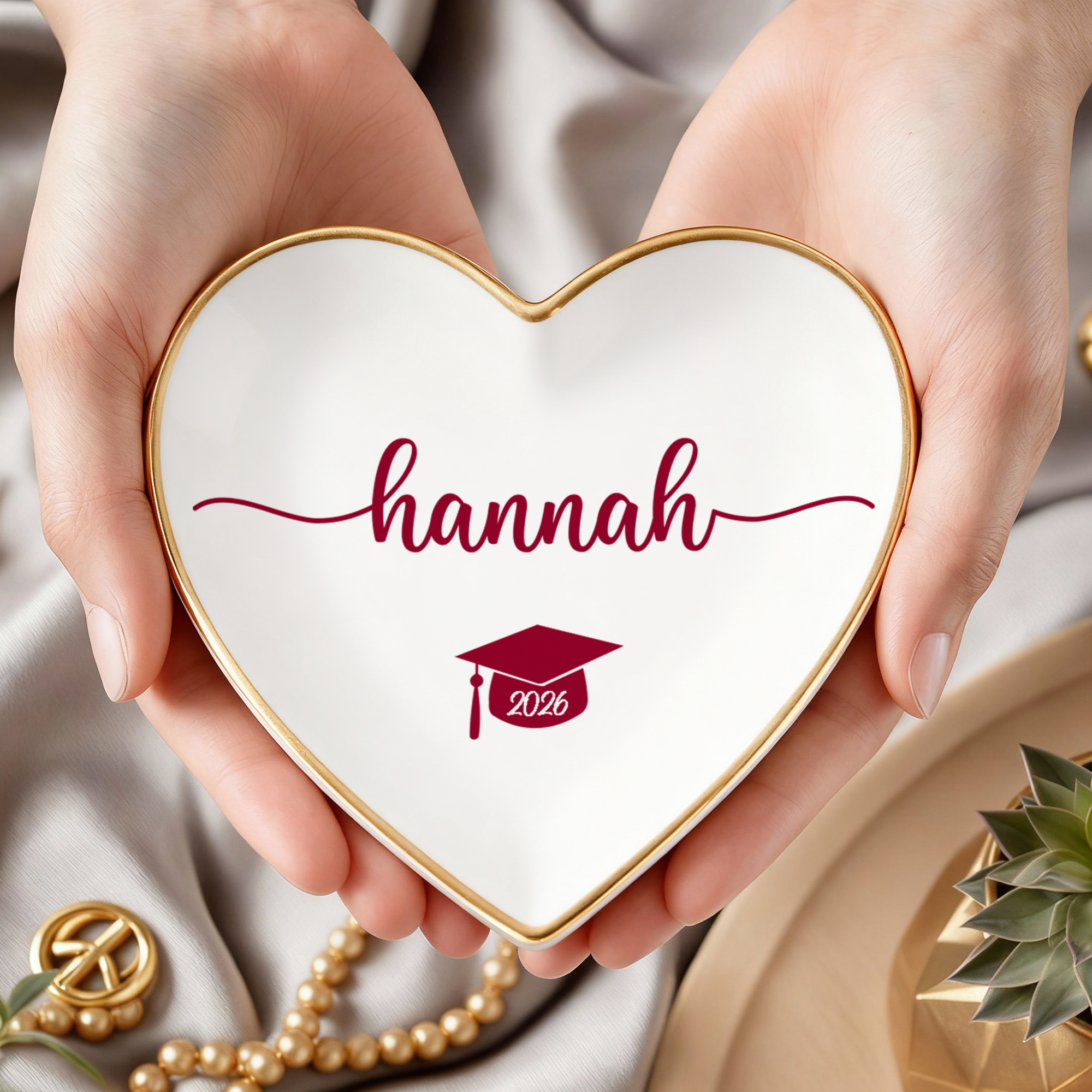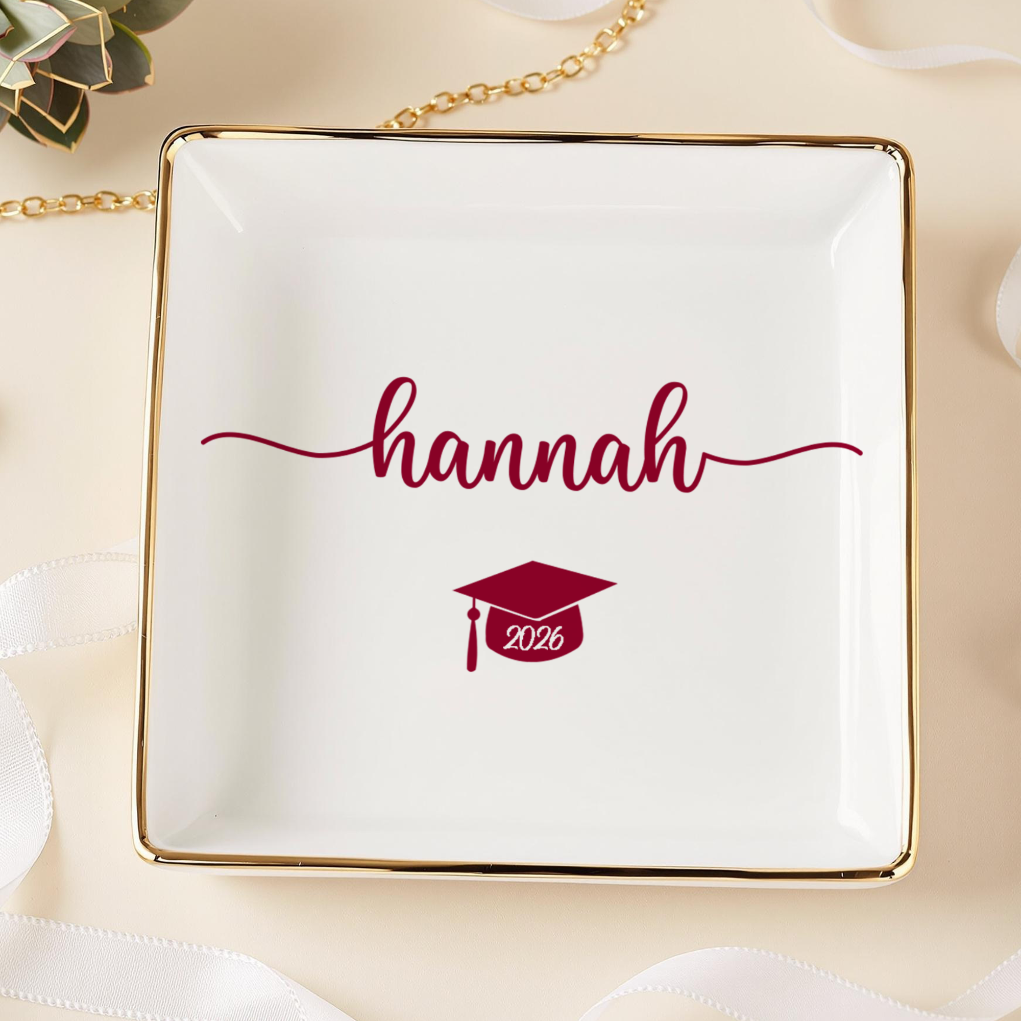 Celebrate a proud milestone with the Personalized Name College Graduation Jewelry Ring Dish โ Class Of 2026 Gift. Customized with a name and graduation details, this elegant dish is perfect for holding rings, earrings, and small keepsakes. A beautiful reminder of hard work, dedication, and achievement. A thoughtful graduation gift to commemorate the success of the Class of 2026. ๐