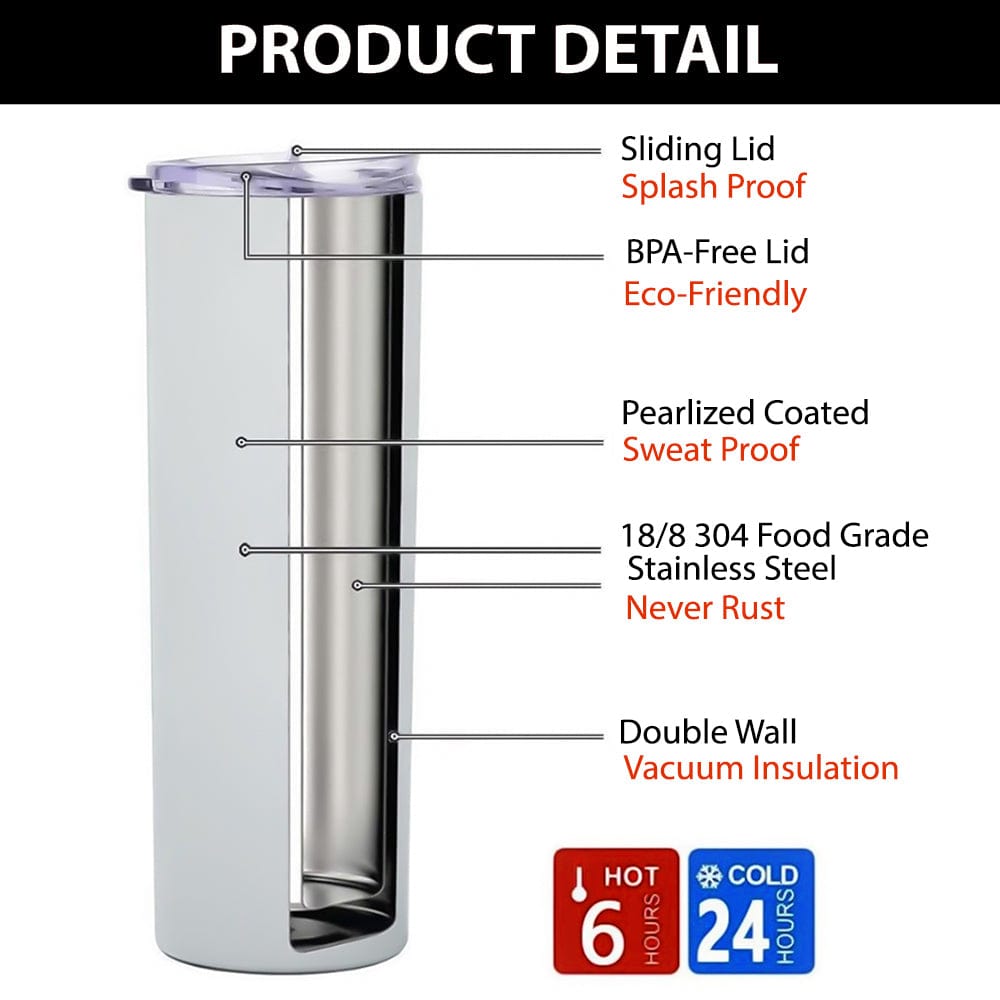 This 20oz tumbler is the perfect travel companion, durable and ready for any adventure. Made from double-wall stainless steel, it keeps contents hot or cold for those long road trips. Also features hi-def vibrant edge-to-edge printing.