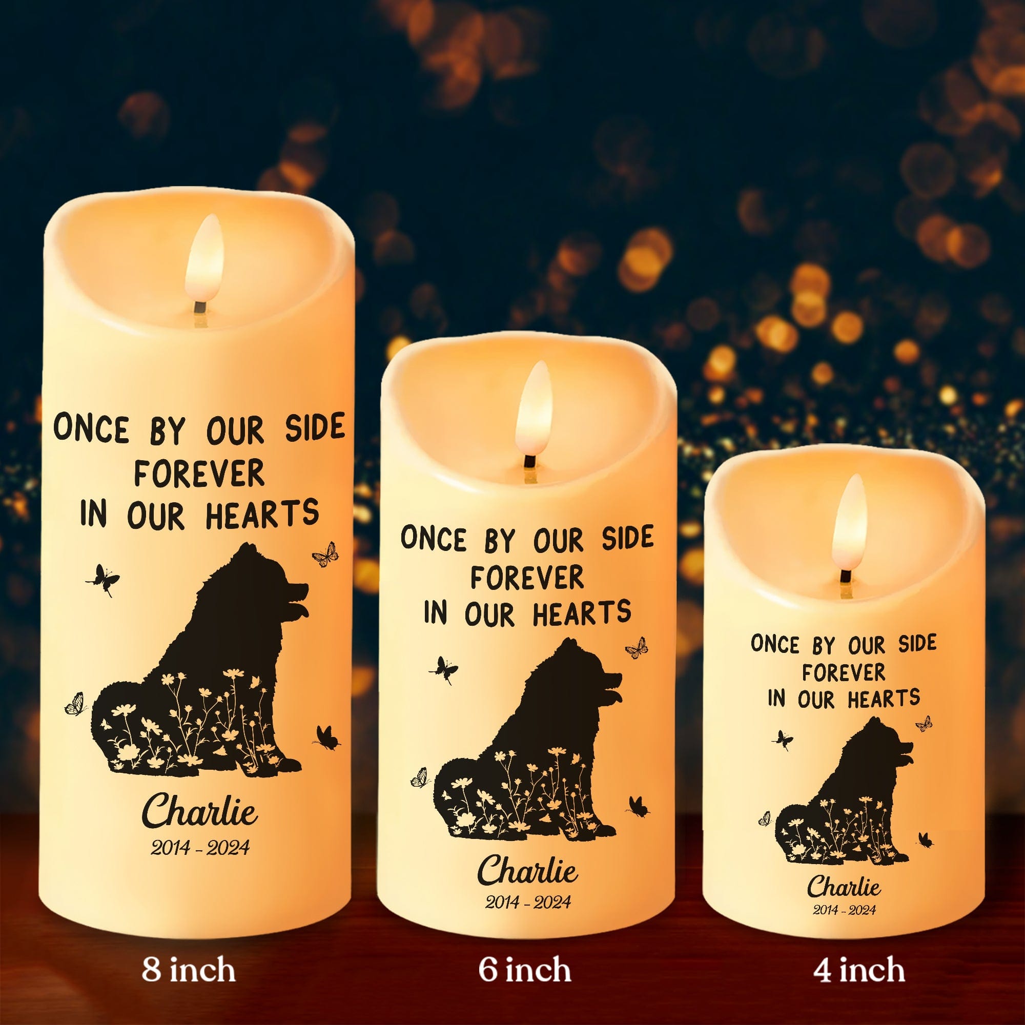 Celebrate the bond between dog lovers and their furry friends with our Personalized Forever Loved LED Candle. This memorial candle is a heartfelt way to honor a beloved pet and keep their memory alive. Illuminate any space with its warm glow and let it serve as a reminder that they will always hold a special place in our hearts.