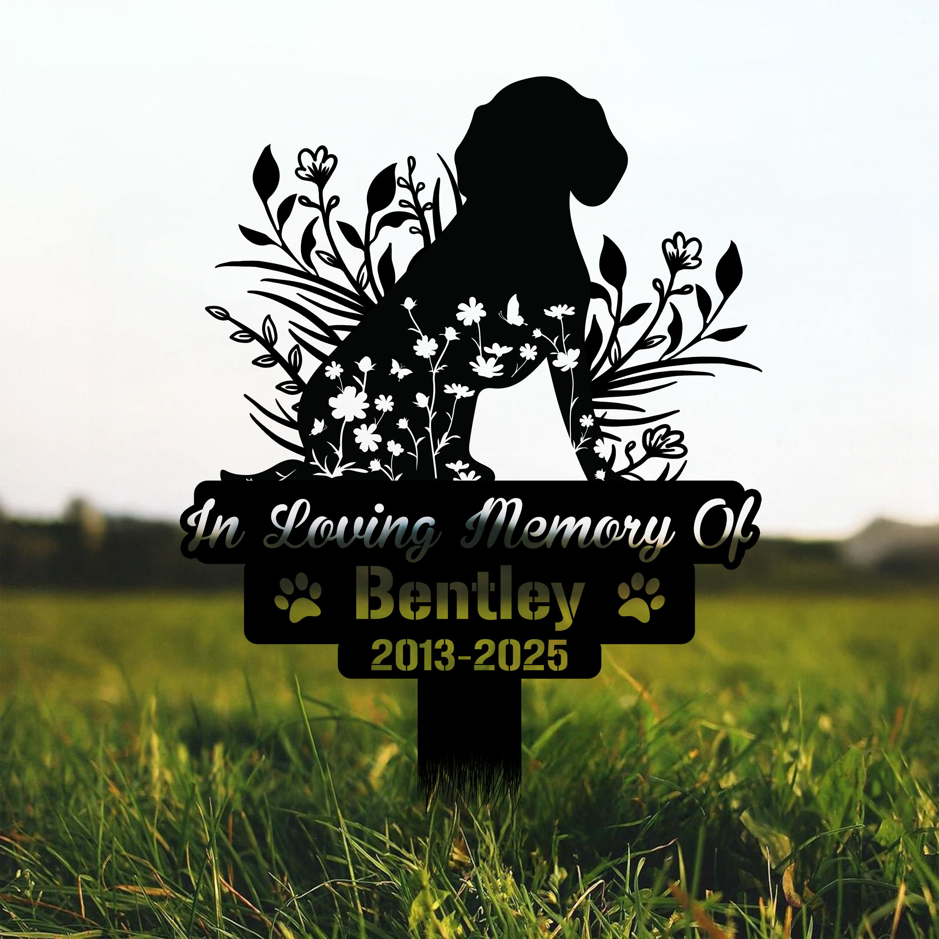Honor the cherished memory of your beloved dog with this personalized "In Loving Memory Of Dog Loss" garden stake. Crafted to withstand outdoor elements, it serves as a heartfelt tribute in your garden or yard, offering comfort and a lasting reminder of your furry friend's special place in your heart. Personalize it to create a meaningful keepsake that celebrates your dog's life and the joy they brought you. This garden stake is a thoughtful gift for anyone seeking a beautiful way to remember their loyal companion.