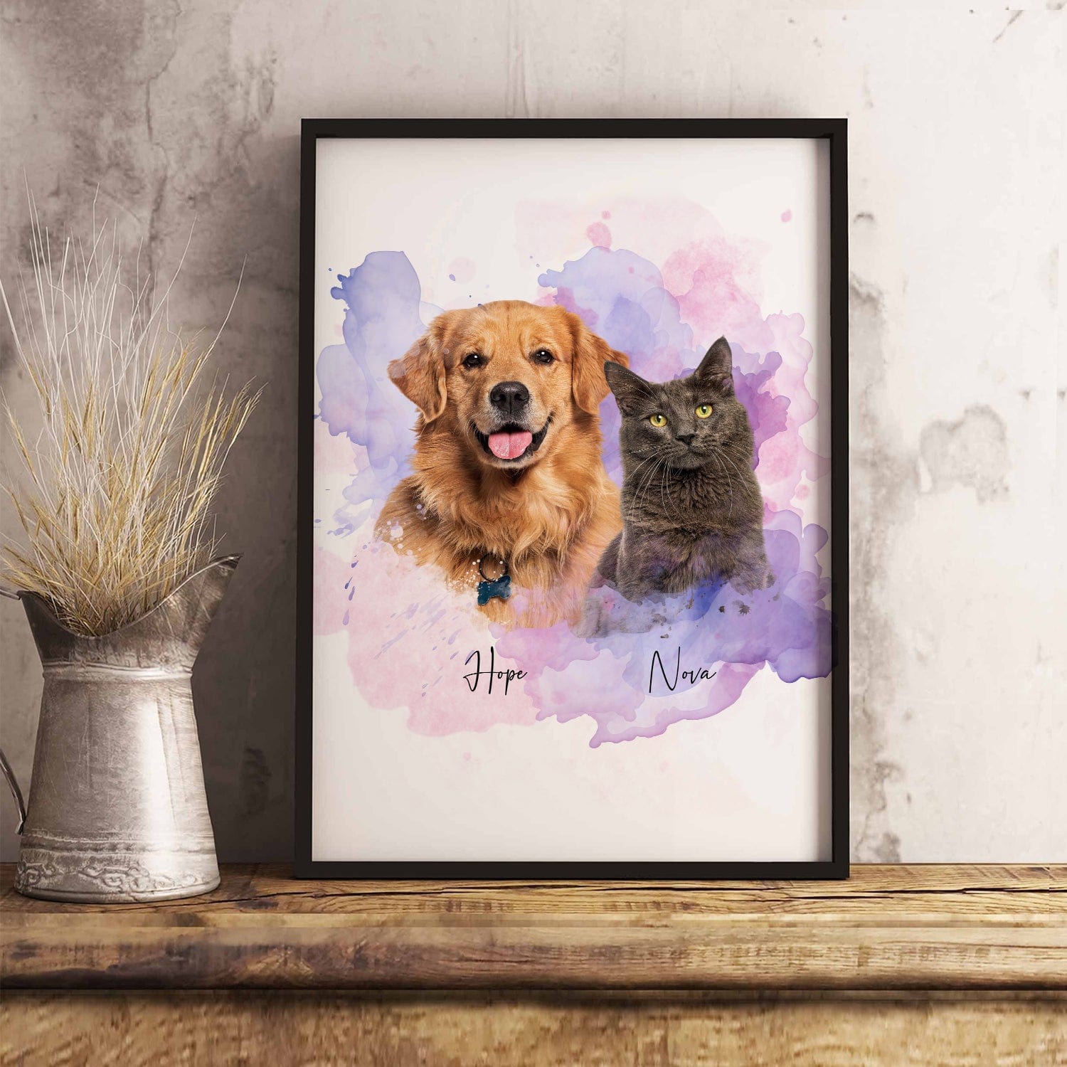 Surprise your loved ones with a unique and personalized gift - our Custom Pet Photo Watercolor Poster Canvas Picture Frame! A perfect present for any pet lover, this gift will capture their furry friend's precious moments in a beautiful and artistic way. Add a personal touch to any room and showcase your love for your pet with this special gift. Order now!