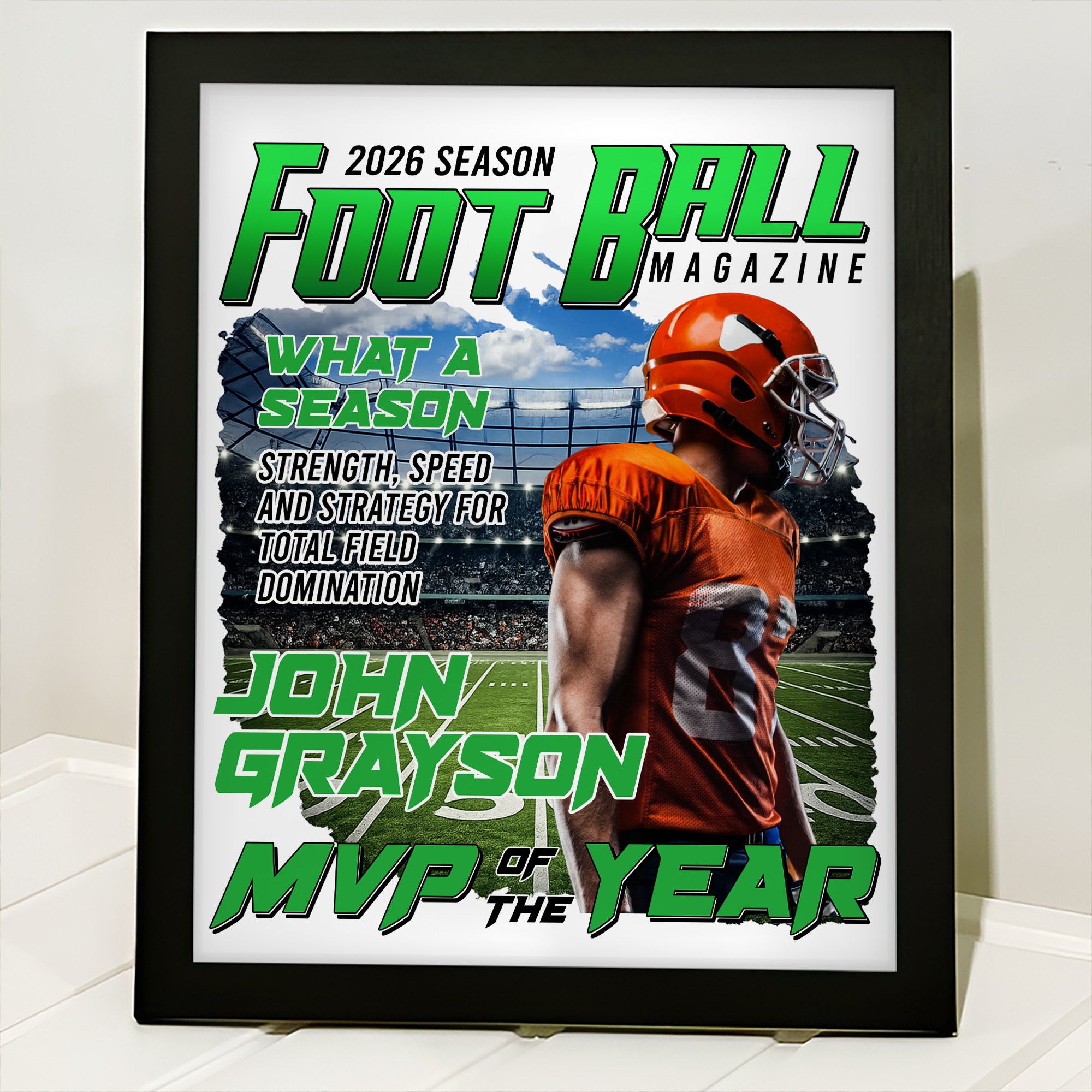 Celebrate your passion for American football with this custom photo magazine picture frame—the perfect gift for devoted fans. Display your favorite game-day moments, iconic magazine covers, or cherished team memories in a stylish frame that captures the spirit of the sport. Personalize it with your own photos to create a one-of-a-kind keepsake that brings stadium energy into any room. Whether you're honoring a legendary player, commemorating a championship season, or showcasing your team pride, this frame transforms ordinary photos into extraordinary displays. Ideal for man caves, offices, or living rooms, it's a thoughtful gift that speaks to every football enthusiast's heart.