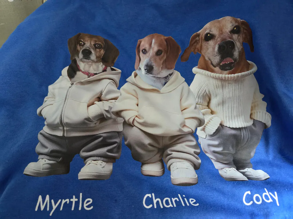 Celebrate your love for dogs with this custom face shirt! Perfect for dog lovers, this shirt makes a great gift. Show off your unique style with a cute dog design on a dark background. Stand out from the pack with this one-of-a-kind shirt!