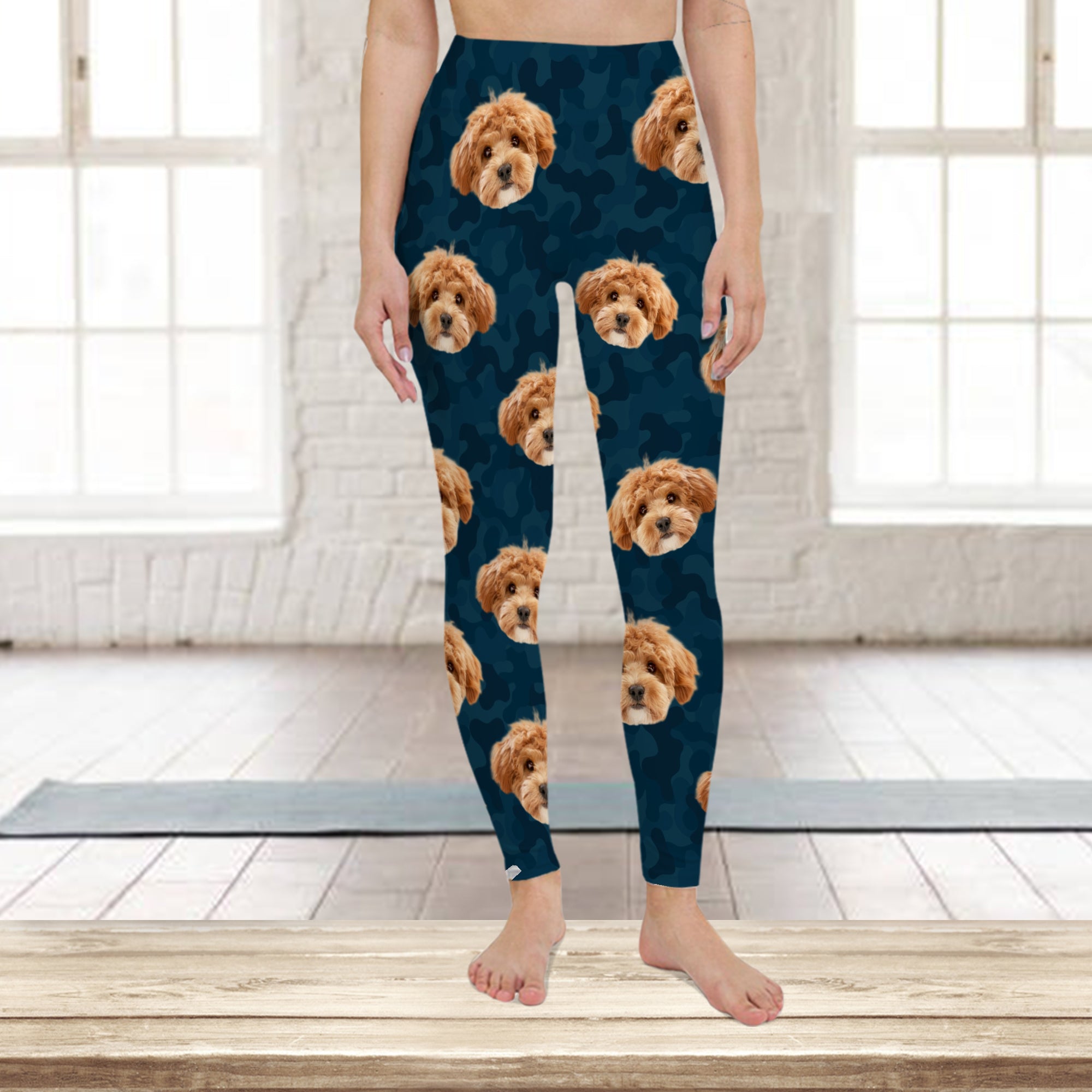 Perfect for dog enthusiasts who want to showcase their love in style, these custom leggings feature your favorite pup against a striking camo background. Designed for comfort and durability, they're ideal for casual wear, workouts, or lounging. The personalized photo element makes them a thoughtful, one-of-a-kind gift that celebrates the special bond between you and your furry friend. Whether you're hitting the gym or running errands, these leggings let you carry your beloved companion with you everywhere you go.
