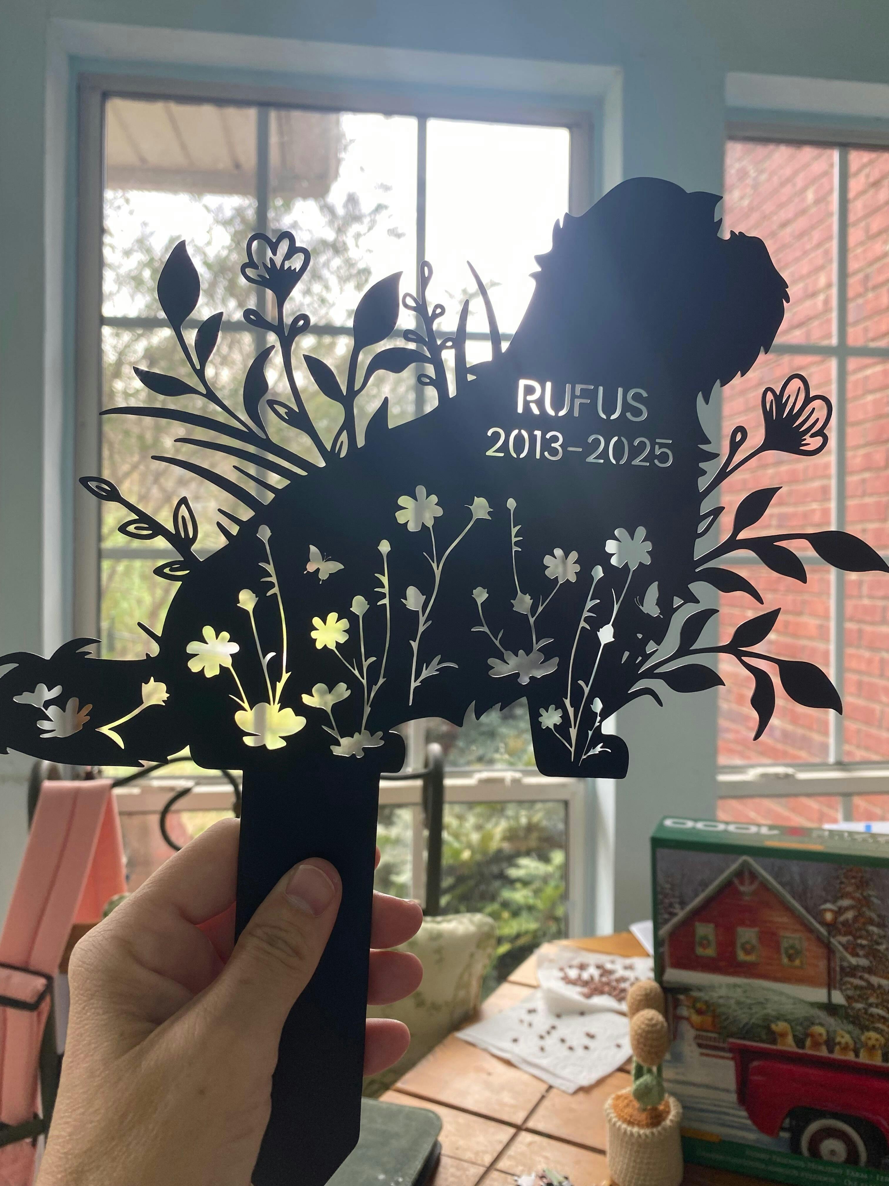 Honor your beloved dog with our Custom Dog Name Memorial Garden Stake! Adorned with your furry friend's name, this stake serves as a beautiful and lasting tribute to their memory. Perfect for any garden or outdoor space, it's a heartfelt way to keep their spirit alive!