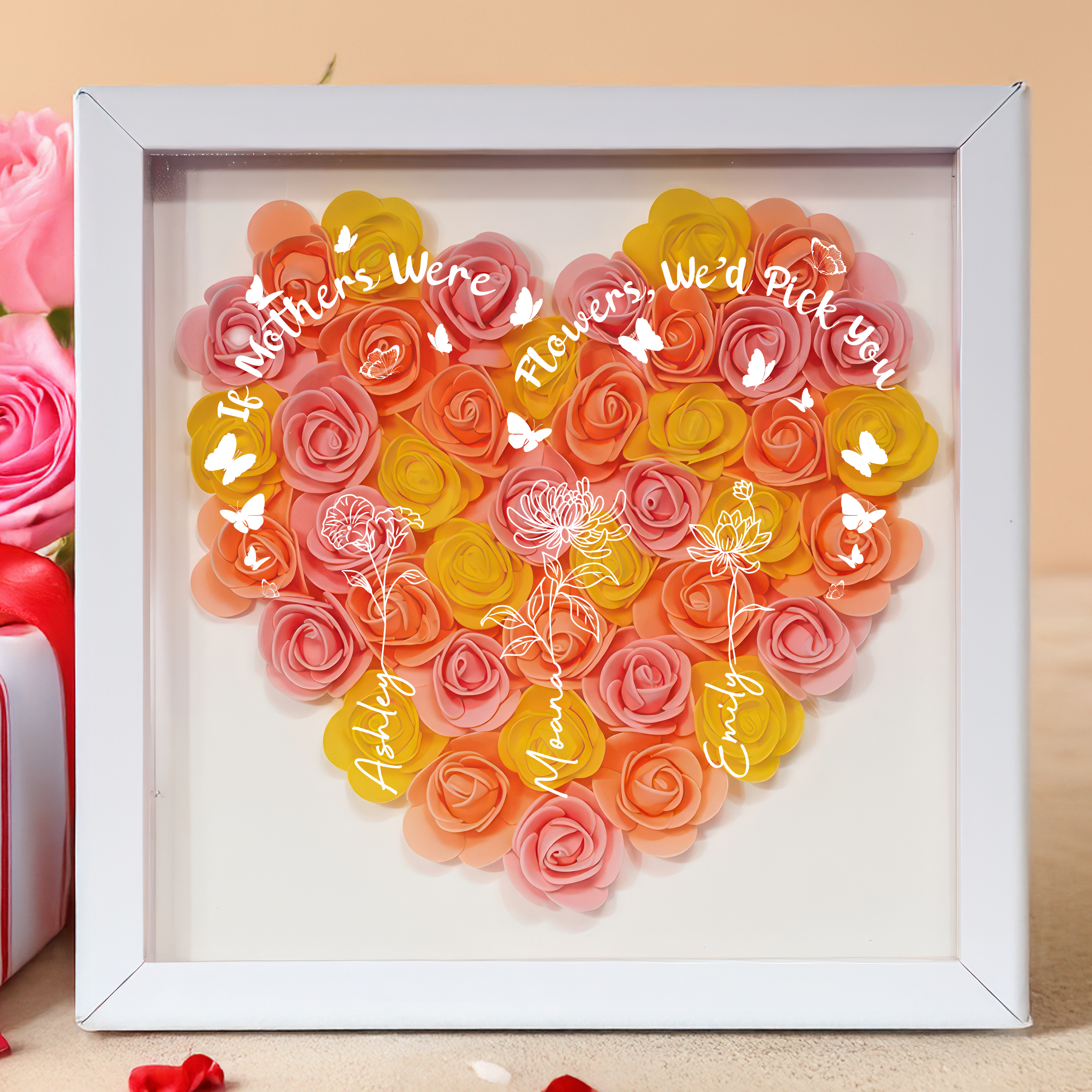 Celebrate your mother's love with our "A Mother Is Like A Flower" shadow box. A perfect gift for Mother's Day, this unique piece captures the beauty and strength of a mother's love. Show your appreciation with this heartfelt and meaningful present.