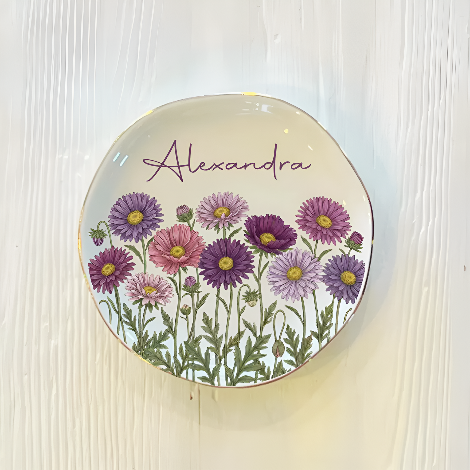 Personalized Watercolor Birth Month Flower Ring Trinket Dish Mother's Day, Birthday, Wedding Bridesmaid Gift HA75 921086