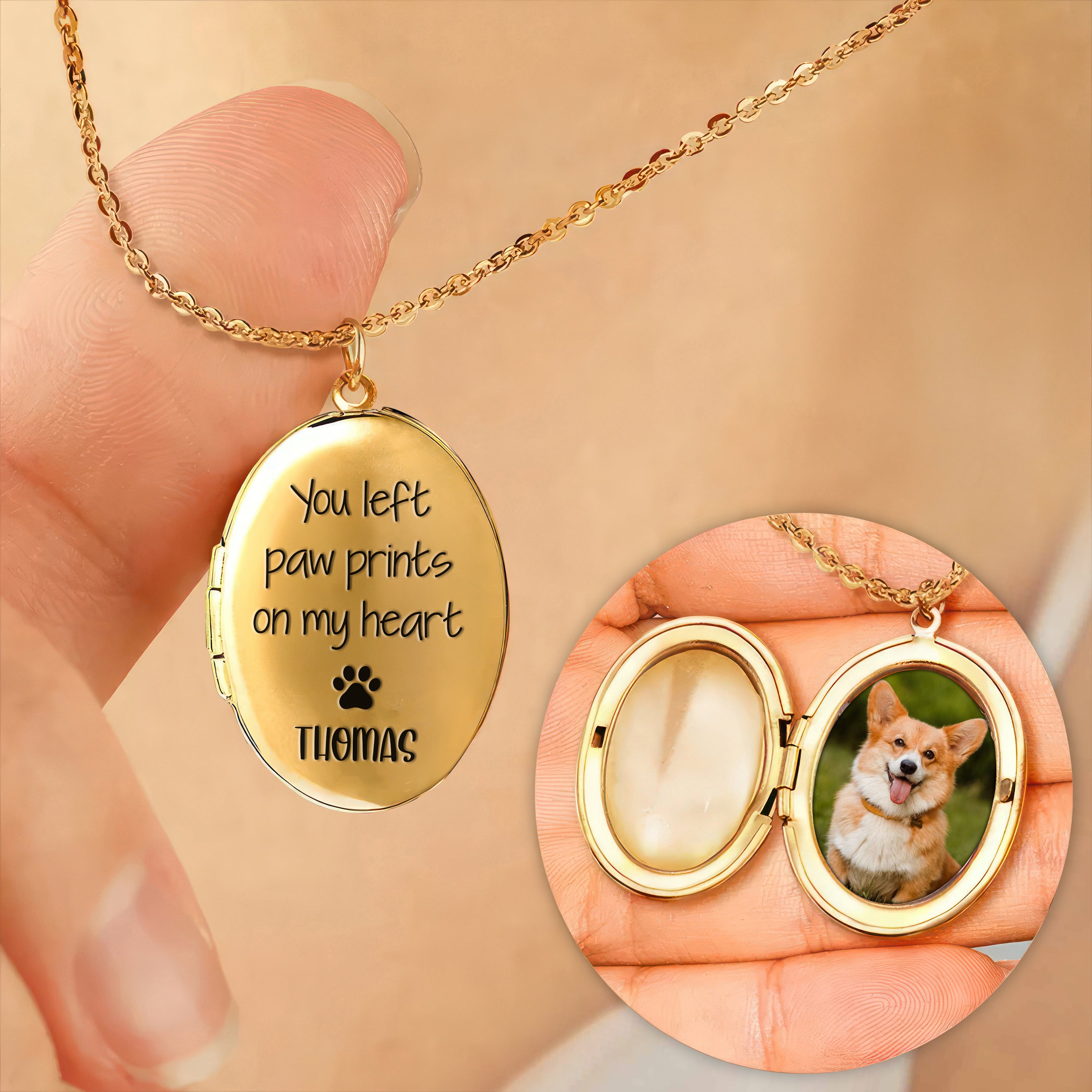Custom Photo You Left Paw Prints On My Heart Dog Memorial Locket Necklace HO82 893674