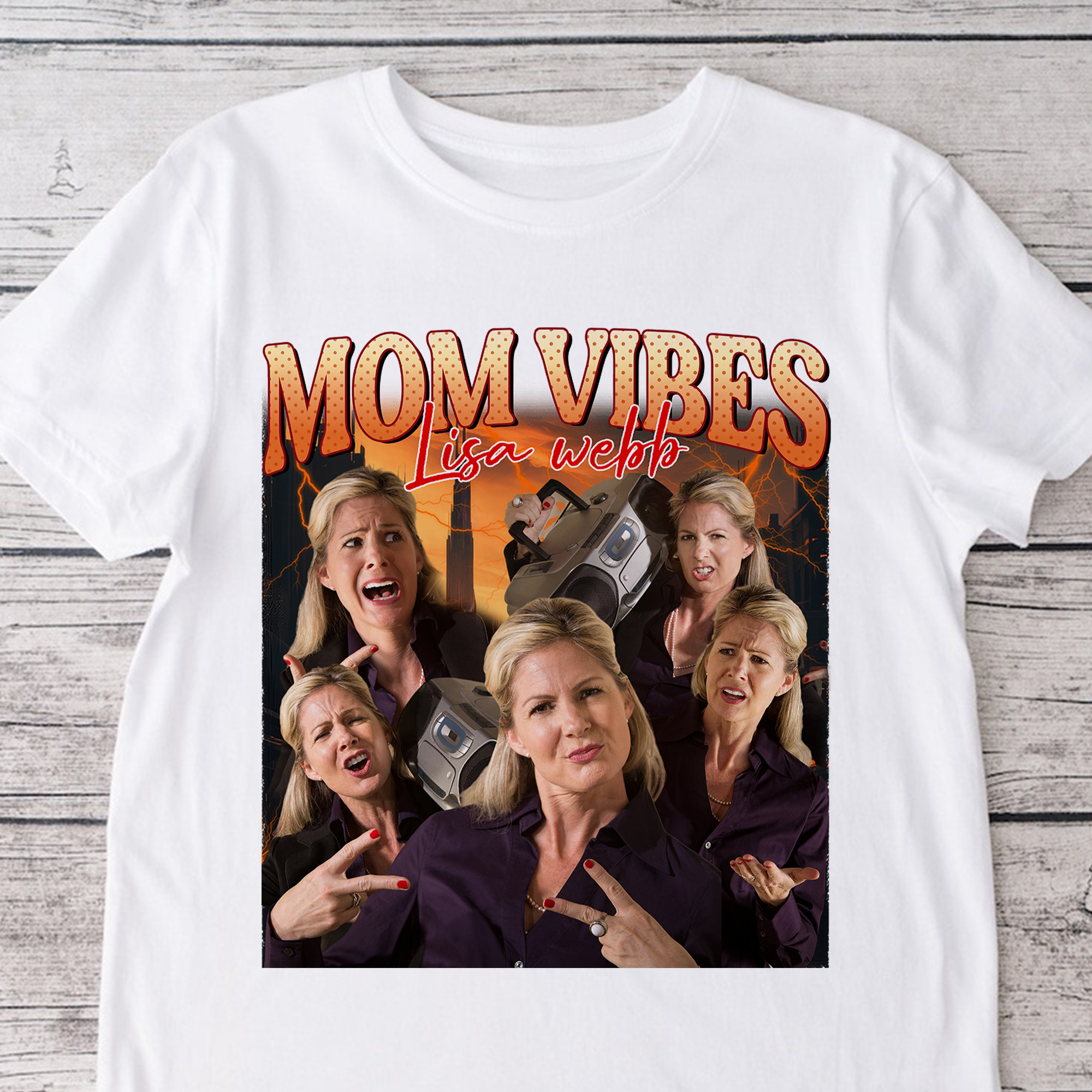 Elevate your mom's cool factor with our Custom Photo Mom Vibes shirt! This personalized retro-style bright shirt is perfect for any mom who wants to show off her trendy and unique style. Stand out from the crowd and join the cool mom club with our vibrant and stylish shirt!
