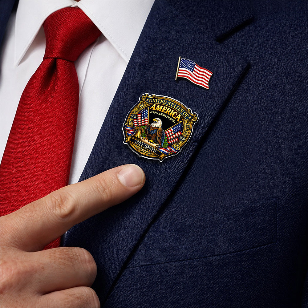 Celebrate America’s milestone with this USA 250th Anniversary acrylic pin. Featuring a bold patriotic design with a majestic eagle and custom name detail, it honors 250 years of freedom and pride. Compact, durable, and full of meaning, it’s perfect for suits, jackets, or everyday wear. A unique and thoughtful keepsake for anyone proud to celebrate the spirit of the USA 🇺🇸✨