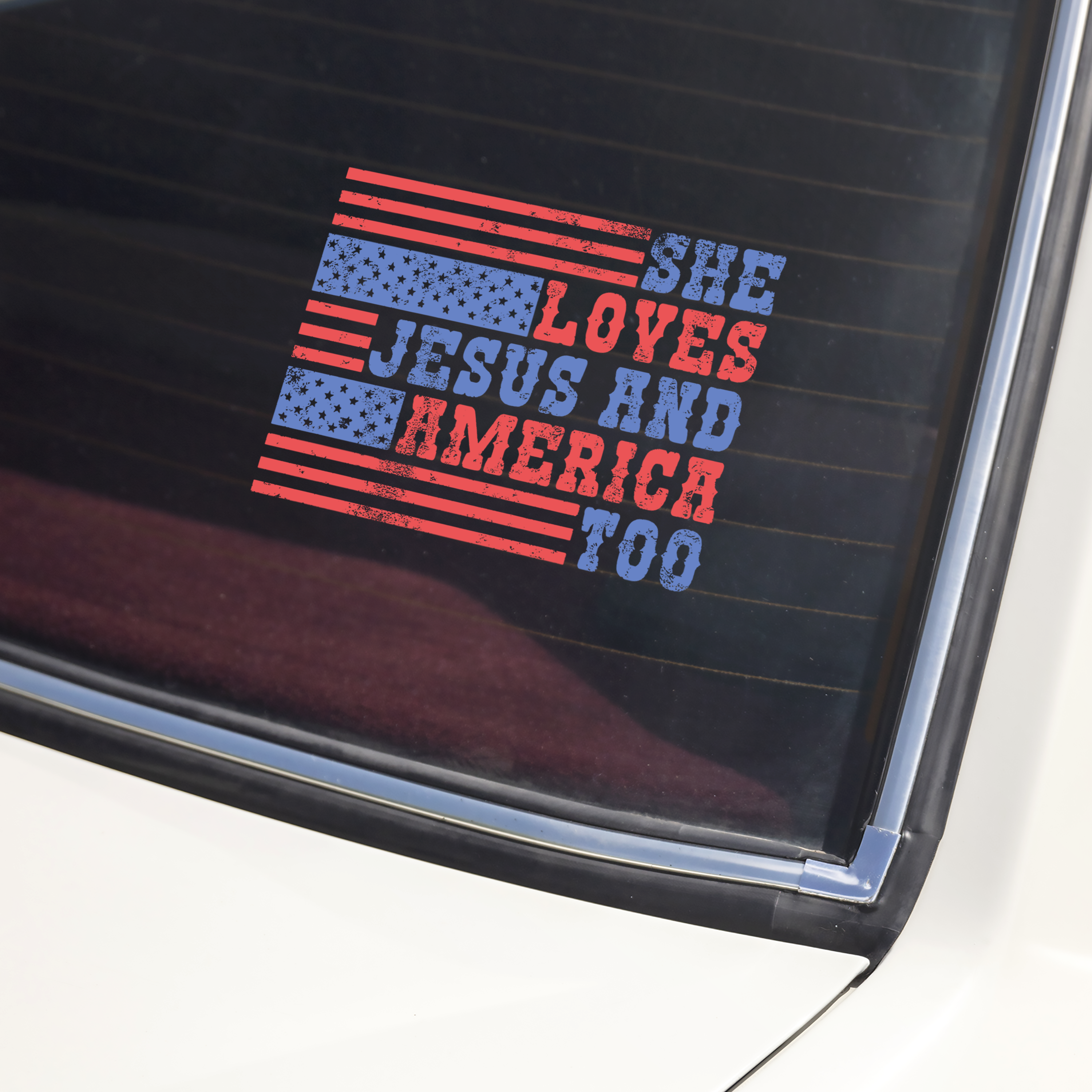 Show your faith and patriotism wherever you go with this personalized “He Loves Jesus and America Too” car window decal sticker. Designed with a bold and meaningful message, it’s perfect for adding a unique touch to your vehicle. Easy to apply and eye-catching, this decal is a great way to express your beliefs while on the road.