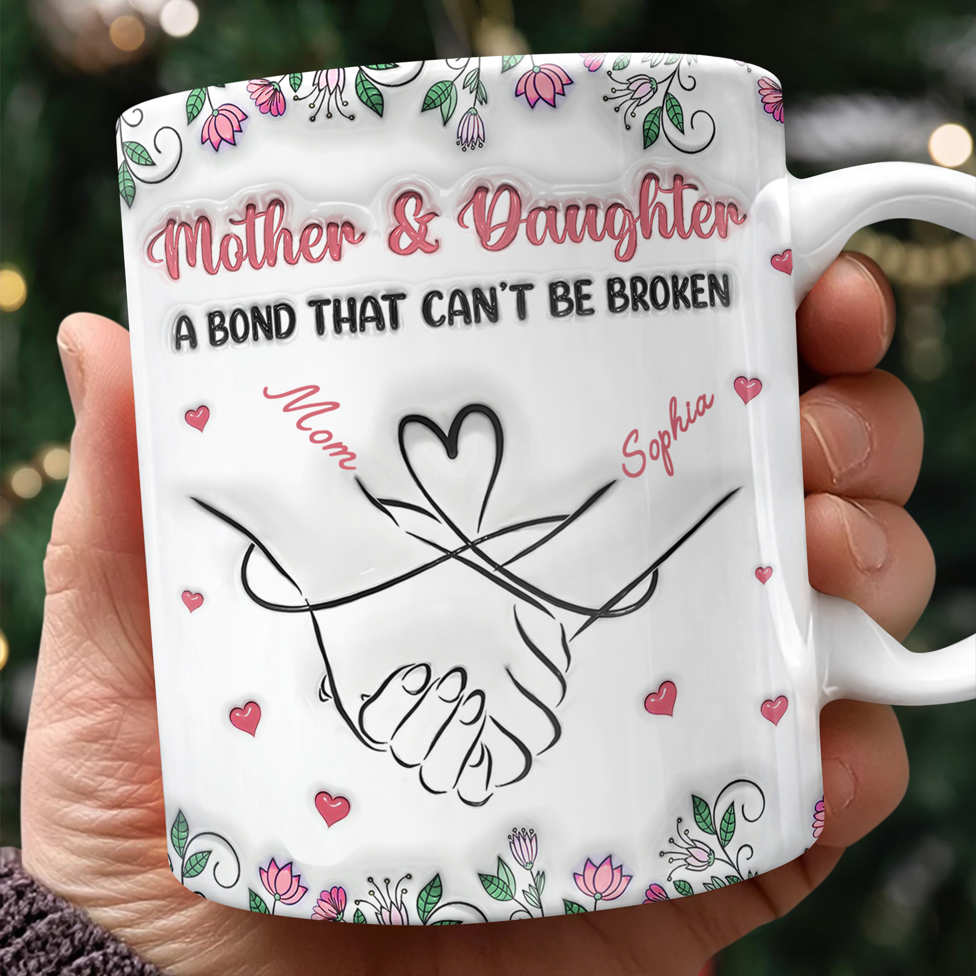 Honor the special mother-daughter connection with this personalized mug featuring a striking 3D inflated effect. A meaningful gift that celebrates your bond, perfect for daily use or display. Customize it to make it uniquely yours—a keepsake she'll cherish forever.