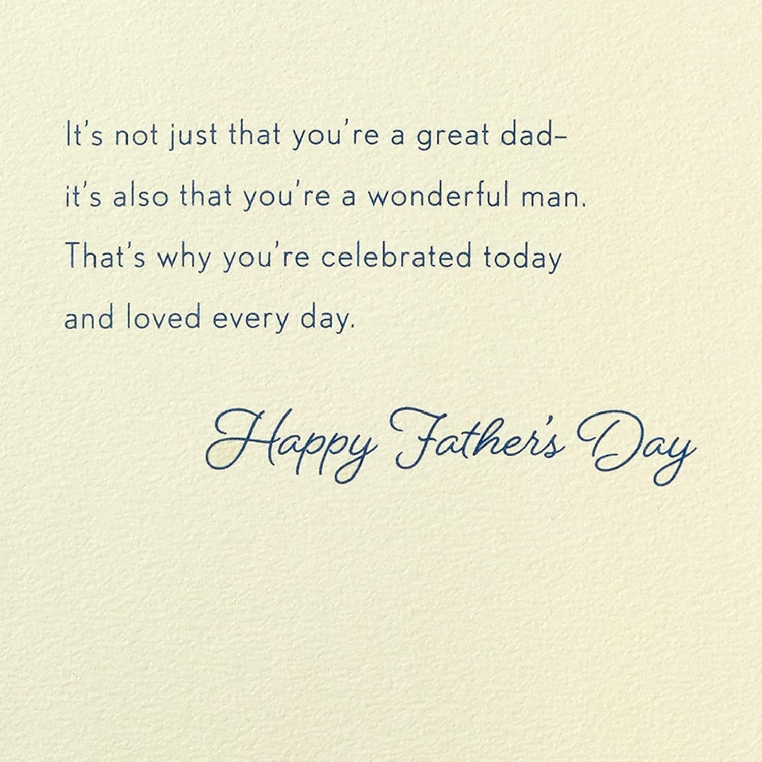 • Inside reads: "It's not just how you look on the bright side of things—it's the way that hopeful spirit rubs off on everyone around you. It's not just that you're strong—it's that you help others feel stronger, too. It's not just the wisdom you speak—it's the thoughtful way you live it out. It's not just that you're a great dad—it's also that you're a wonderful man. That's why you're celebrated today and loved every day. Happy Father's Day."